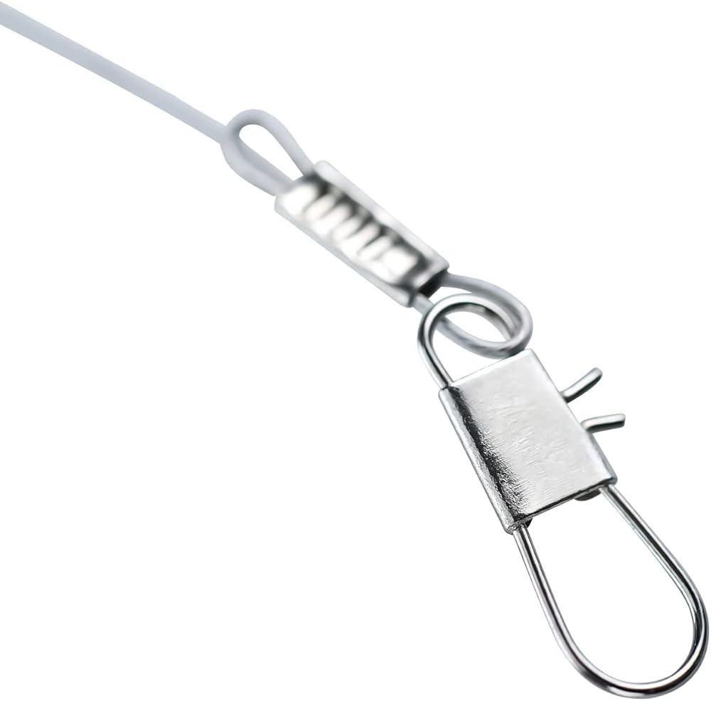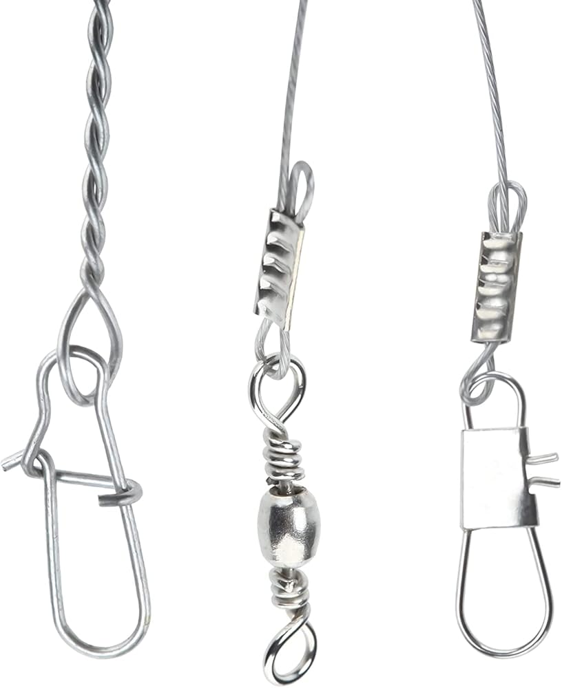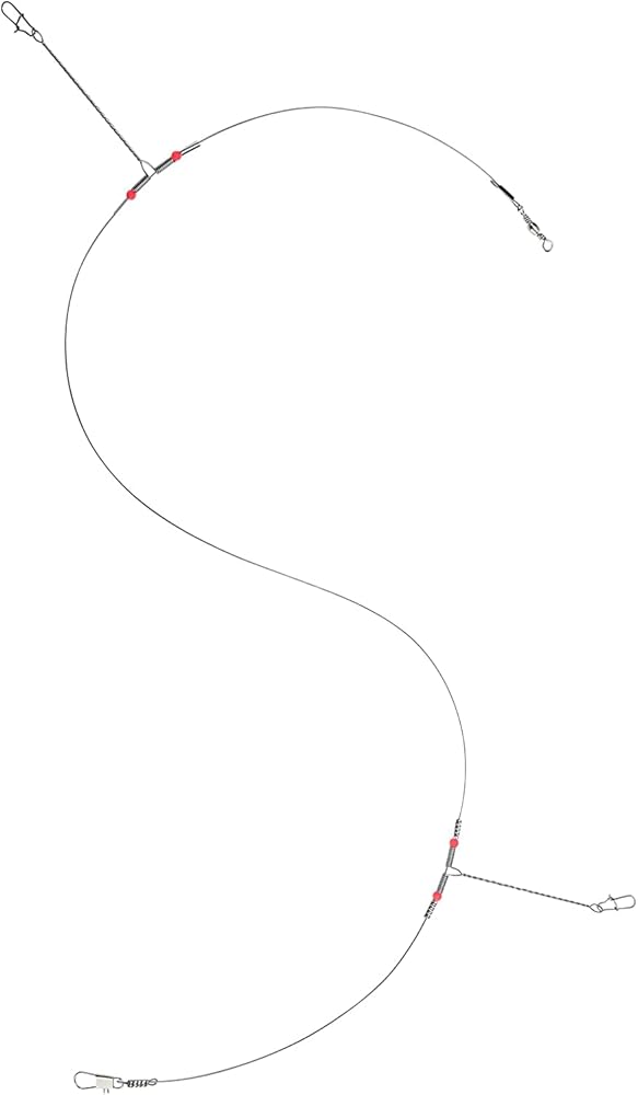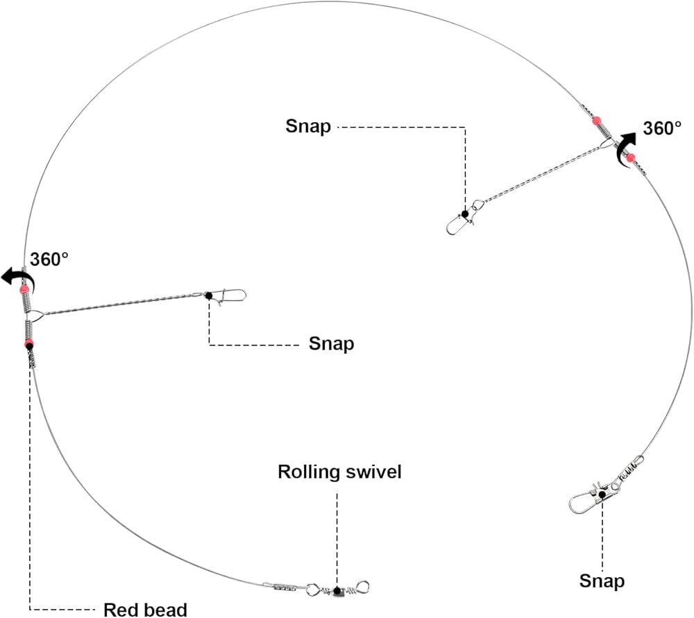 تشمل العبوة: 50 قطعة من أسلاك الصيد المصنوعة من الفولاذ المقاوم للصدأ مع ذراعين، مزودة بأزرار كبس ودوارات وخرز أحمر.