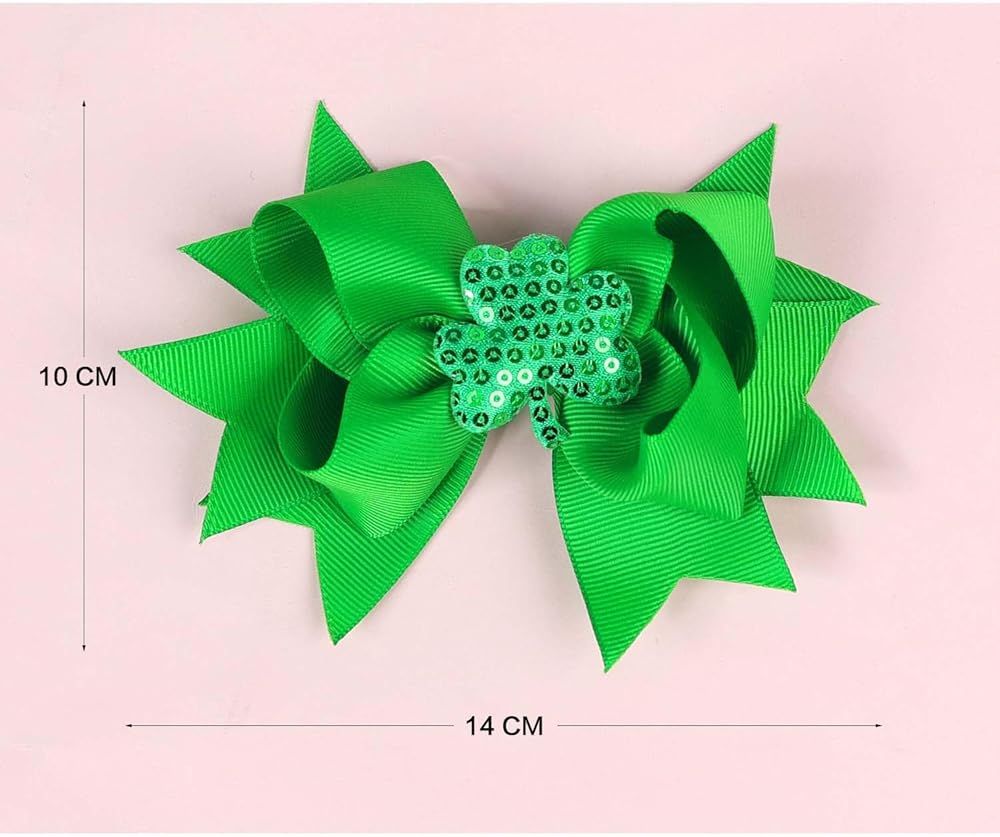 الأخضر والأبيض هما اللونان الرئيسيان على فيونكات الشعر، مشابك شعر رائعة للغاية ورائعة لتزيين شعر الفتيات الصغيرات، هدية مثالية لعيد القديس باتريك، أو الكريسماس، أو رأس السنة، أو الربيع، أو المدرسة، أو حفلات العطلات الأخرى أو الارتداء اليومي.