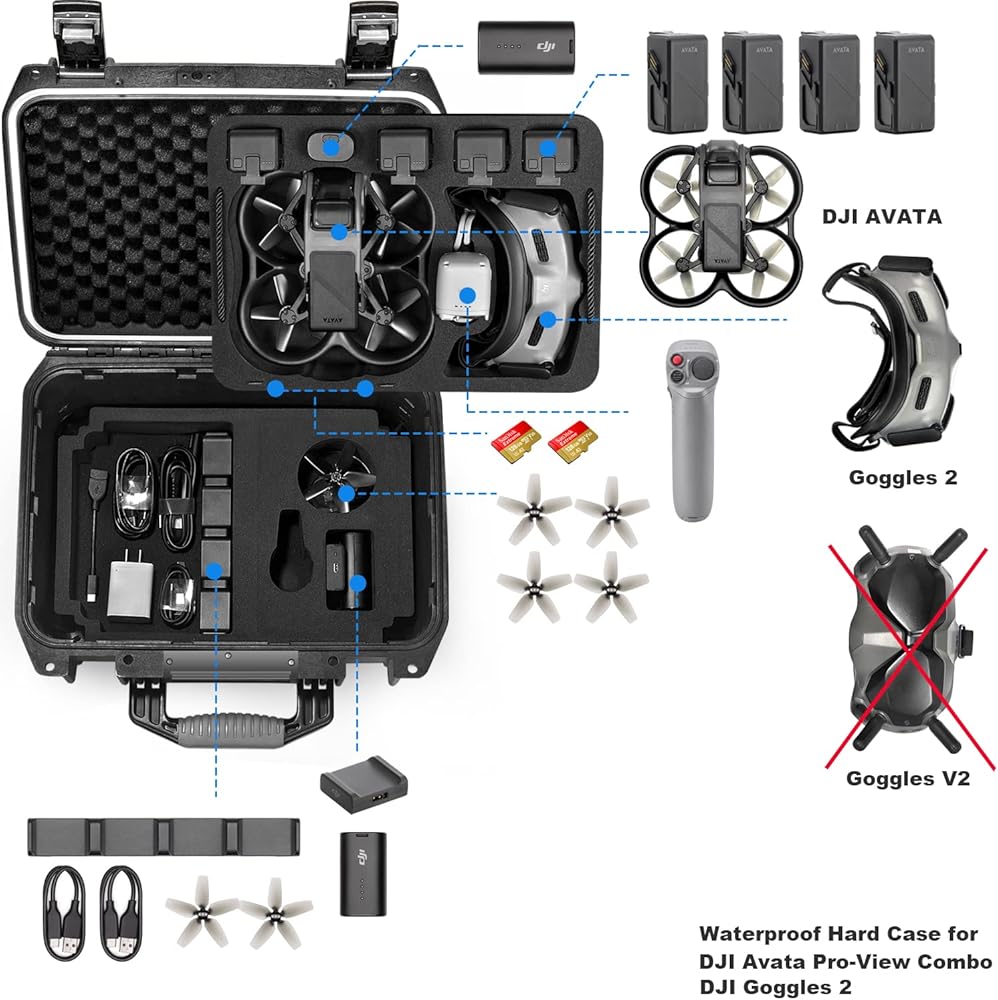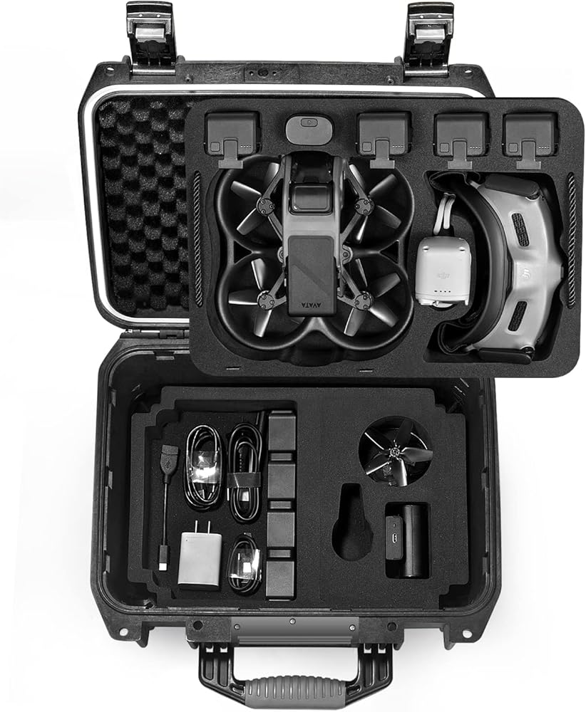 سعة التخزين: تحمل 1 DJI Avata Pro، 5 بطاريات DJI Avata، 1 DJI Goggles 2، 2 DJI Goggles 2 بطاريتين، 1 DJI Motion Controller، 1 محول طاقة DJI Avata، 1 مركز شحن، 2 بطاقة Micro SD، 4 مراوح Avata، كابلات والمزيد من ملحقات طائرات DJI Avata بدون طيار.