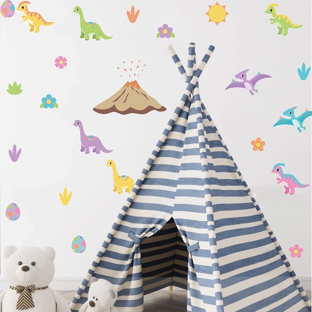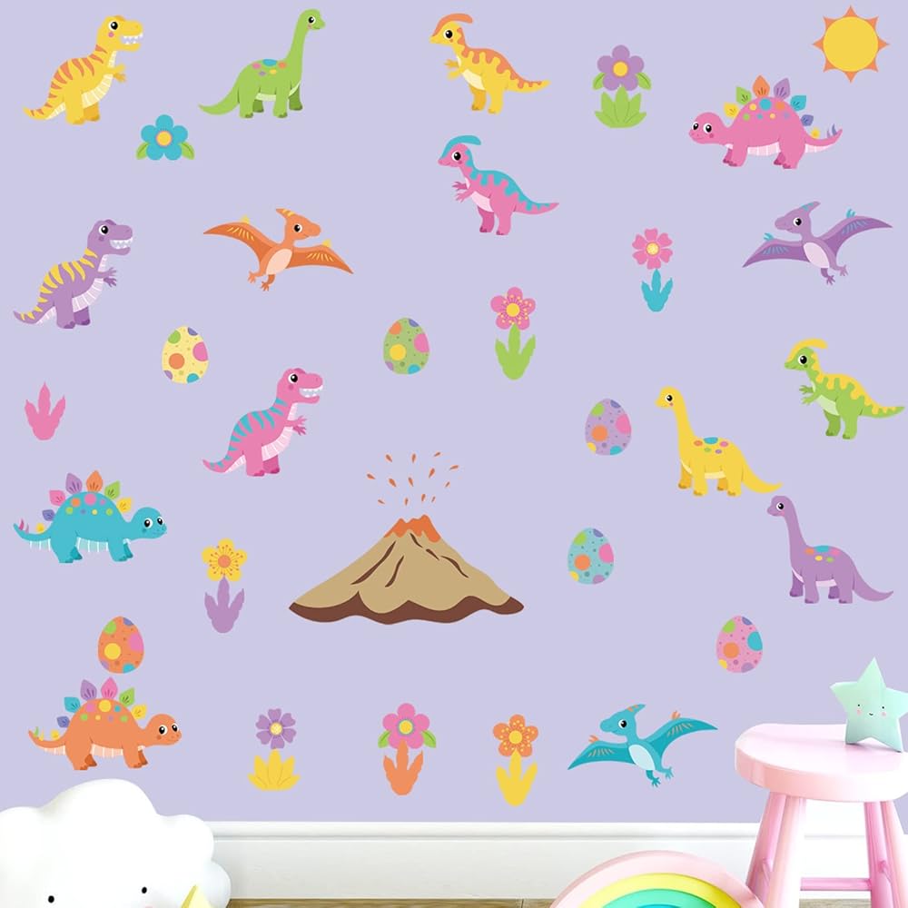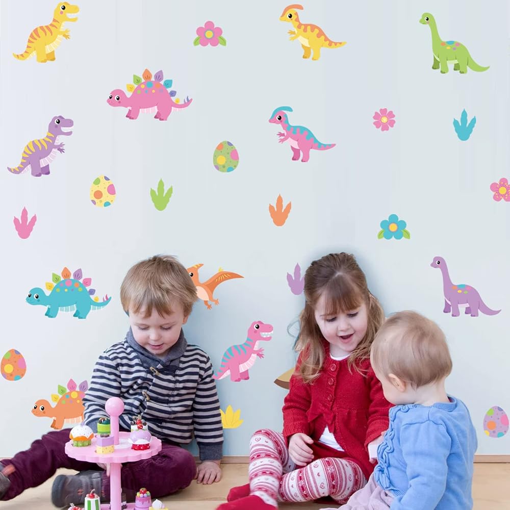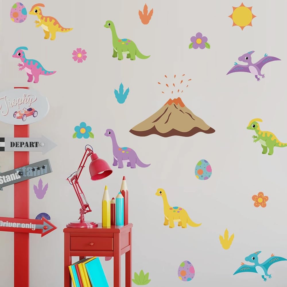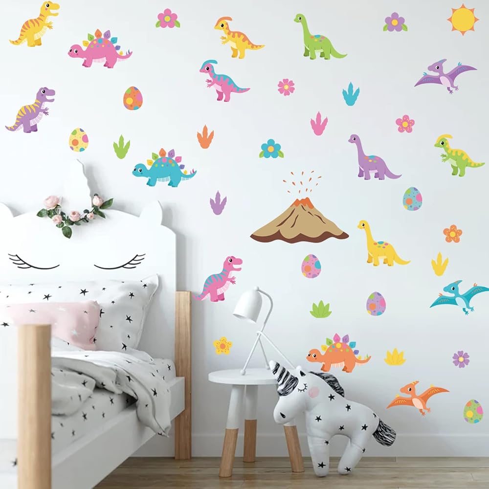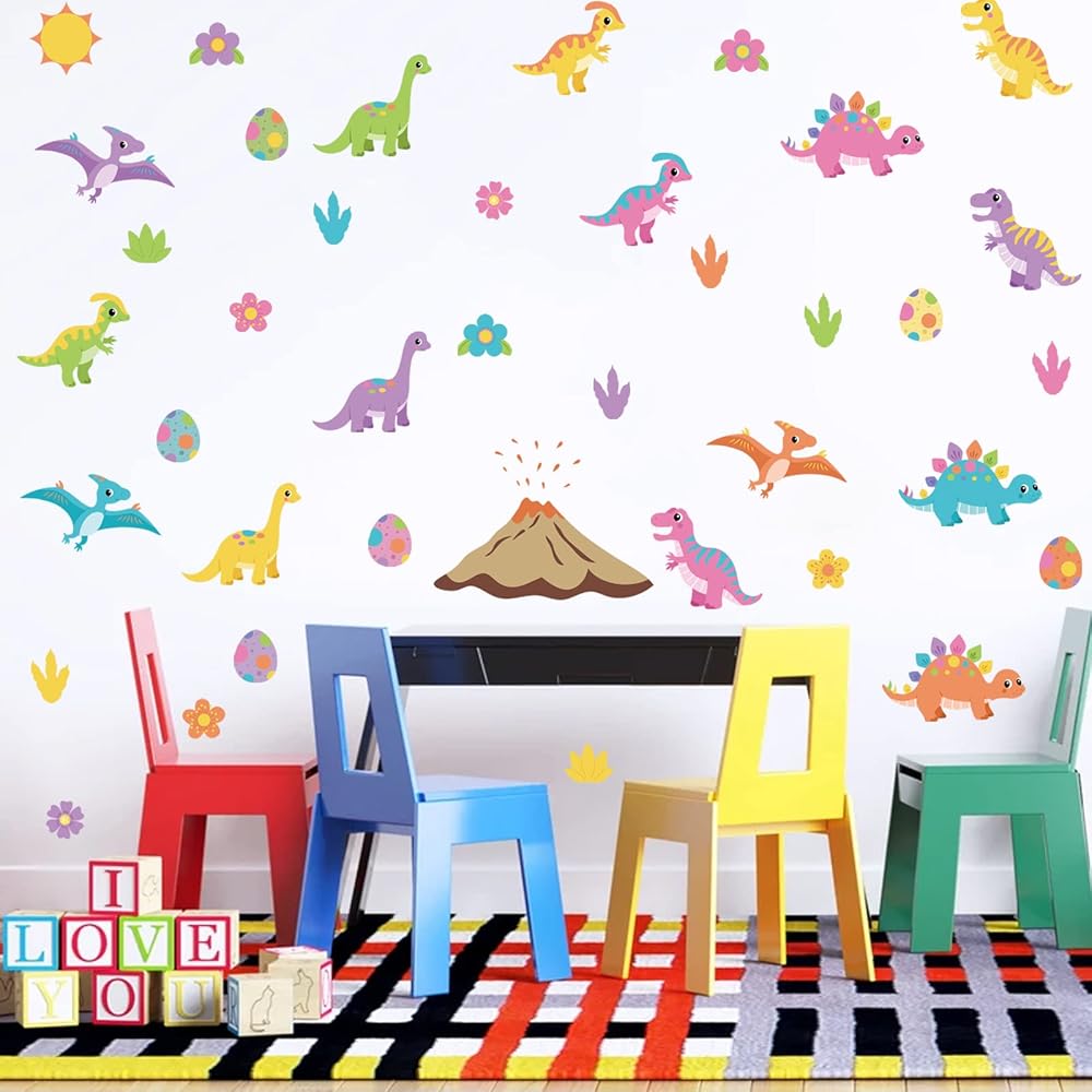 🦕 ملصقات جدارية ملونة للأطفال - هذه المجموعة من ملصقات الحائط الديناصورات الكرتونية اللطيفة ستضفي الحيوية على غرفة نوم طفلك، أو حضانة الأطفال أو غرفة اللعب، أو غرفة البنات، أو الرعاية النهارية، أو الفصول الدراسية لمرحلة ما قبل المدرسة، مما يضيف تصميمًا فريدًا لافتًا للنظر يمكن أن يفعل شيئًا مذهلاً بجدرانك. .
