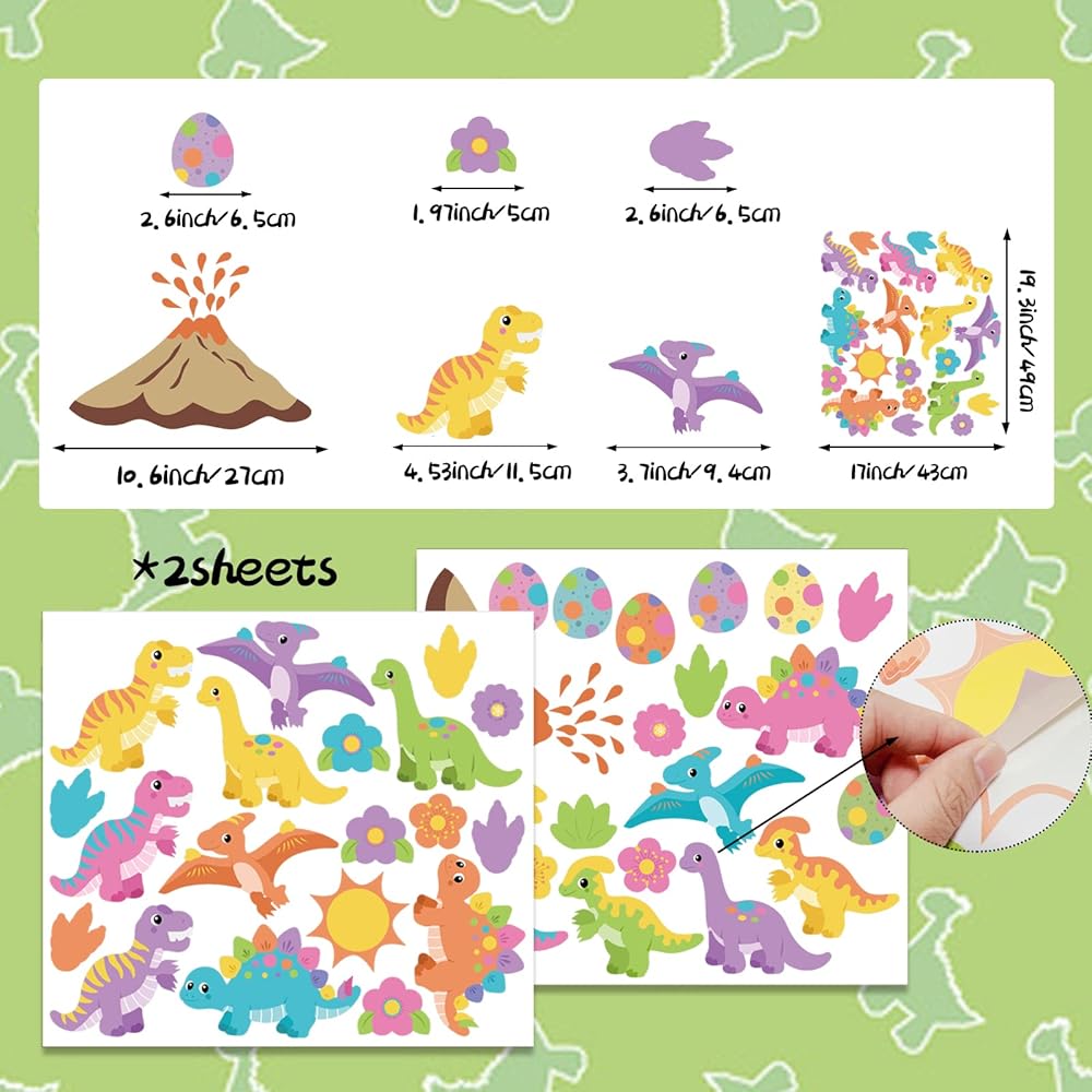 🦖 محتويات العبوة: تتضمن ورقتين من ملصقات الديناصورات اللطيفة الملونة، وتتضمن أنواعًا من الديناصورات الصغيرة وبيض الديناصورات وملصقات الحائط للشمس والزهور. يبلغ حجم ملصقات الديناصورات حوالي 4 إلى 7 بوصات. ديكور جداري مثالي لغرفة نوم الفتيات الصغيرات والأولاد، أو ديكور غرفة اللعب، أو يمكن أن يكون ملصقات ألعاب رائعة مصنوعة يدويًا للأطفال.