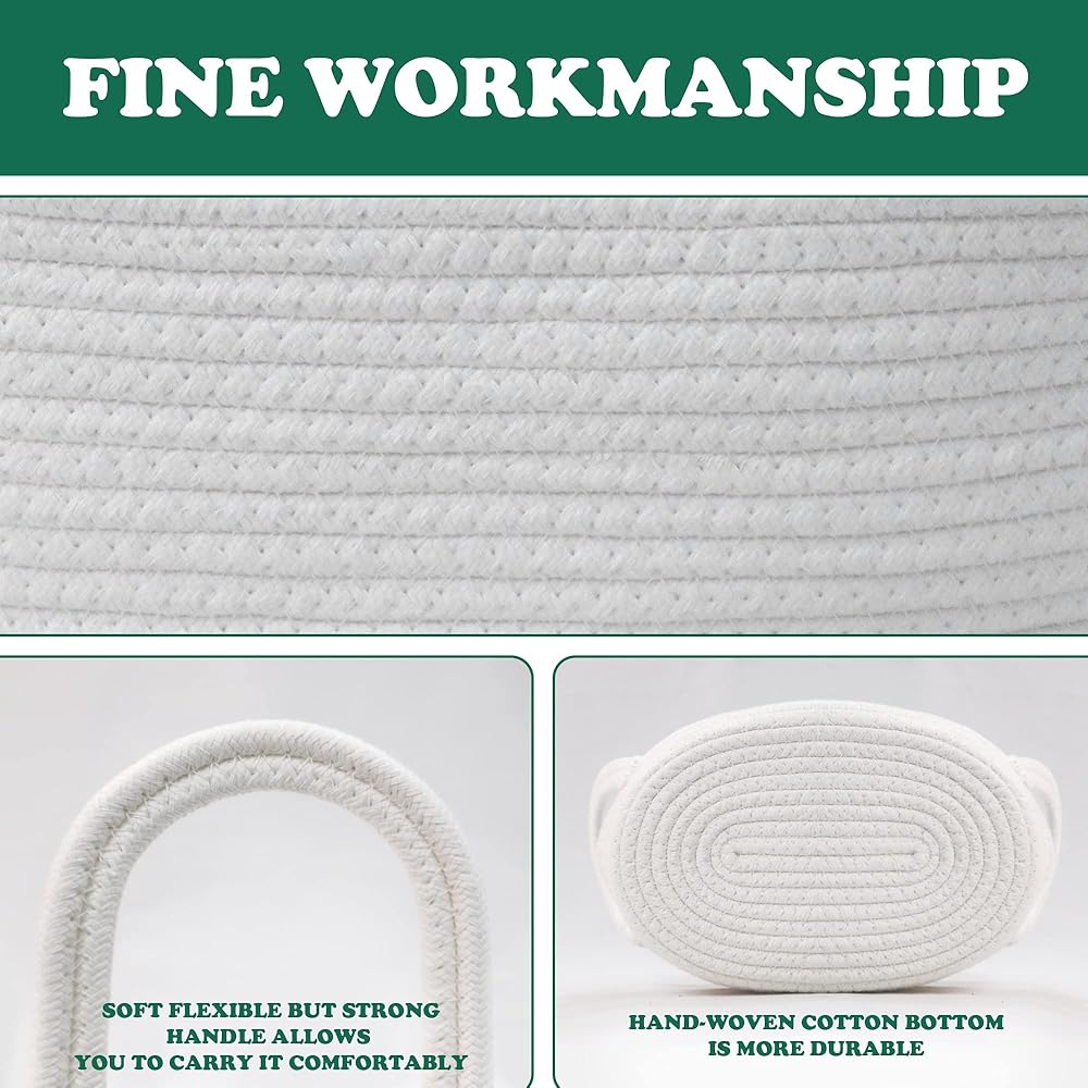 【نسيج حبل قطني ناعم وقوي】سلة الحبال القطنية الخاصة بنا مصنوعة يدويًا تمامًا، وتصميم سلس، وليس من السهل تمزيقها، وأكثر متانة وأكثر أمانًا من المواد الروطان والبلاستيك، ويمكن وضعها في أي مكان في المنزل.