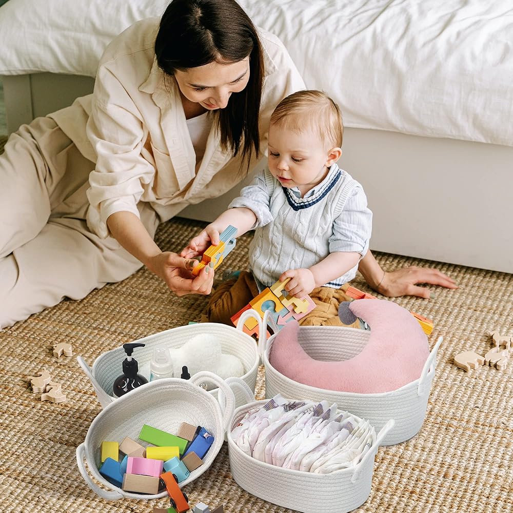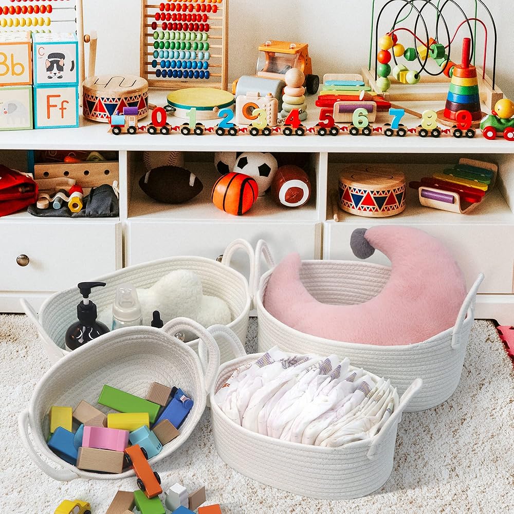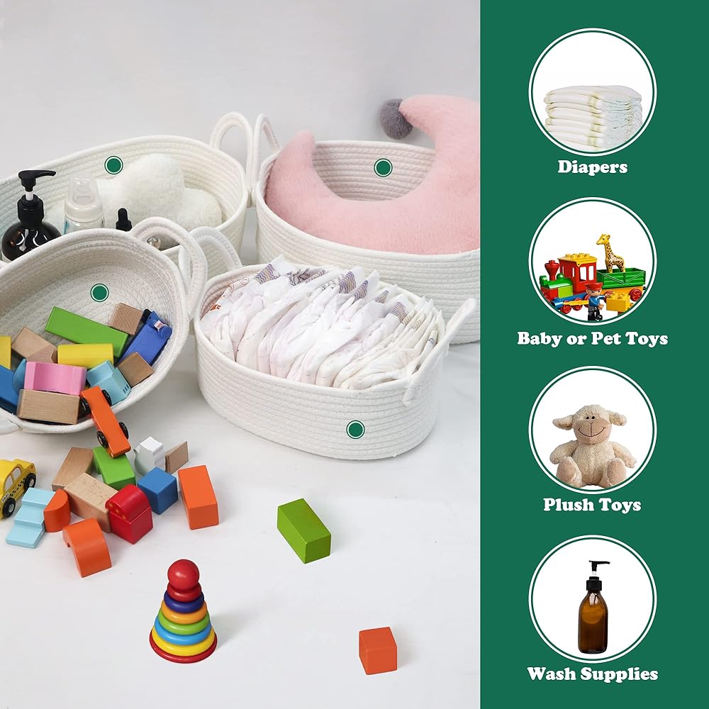 【تخزين متعدد الأغراض】قم بتنظيم جميع الاحتمالات والنهايات في بضع ثوانٍ لجعل حياتك اليومية أكثر تنظيمًا، وتوفير مساحة تخزين صغيرة كافية للأدوات المنزلية أو الحفاضات أو الملابس أو الحرف اليدوية أو ألعاب الأطفال أو ملحقات غرف الأطفال. يمكن استخدامها كسلة رف أو سلة ألعاب للكلاب أو سلة غرفة المعيشة أو سلة مزخرفة.