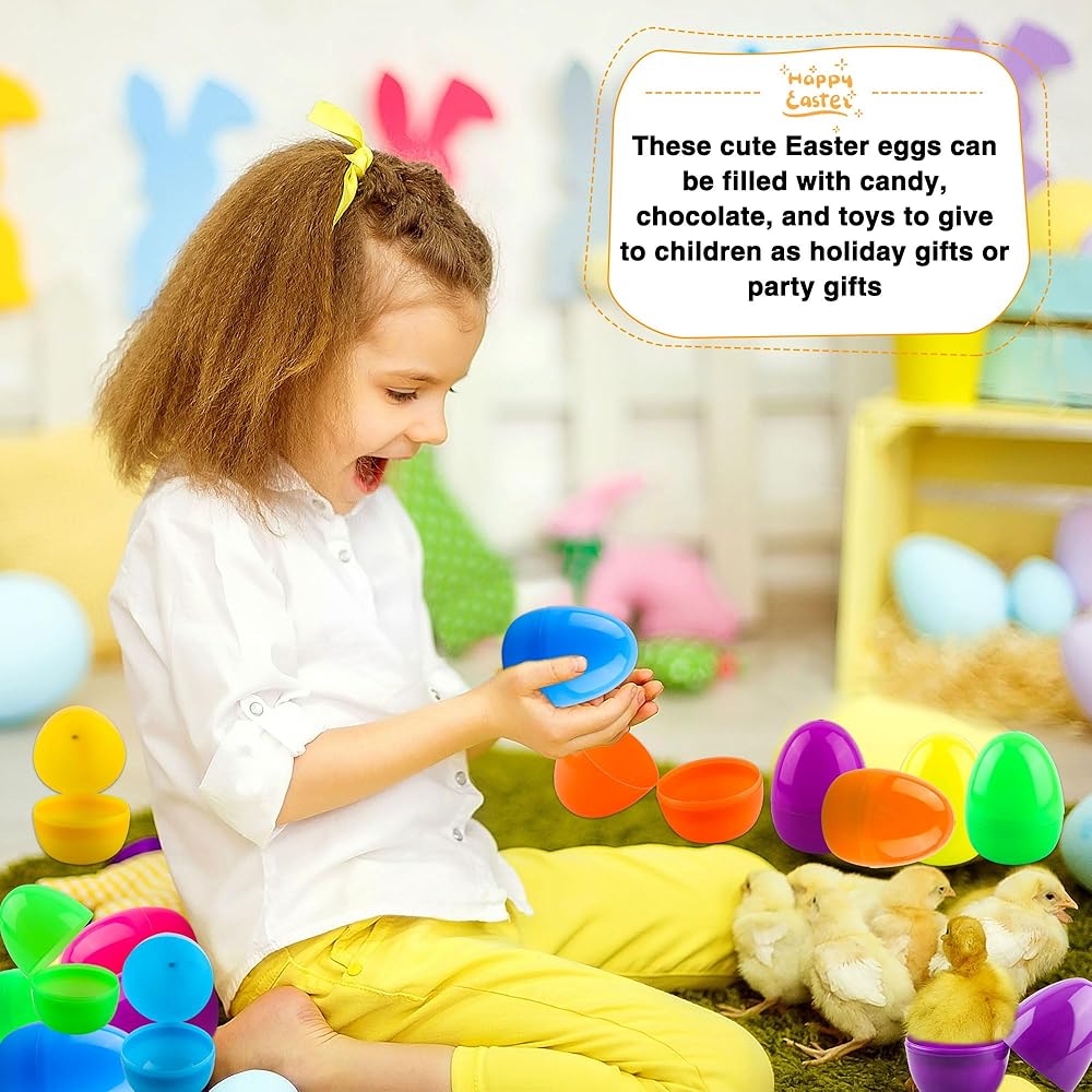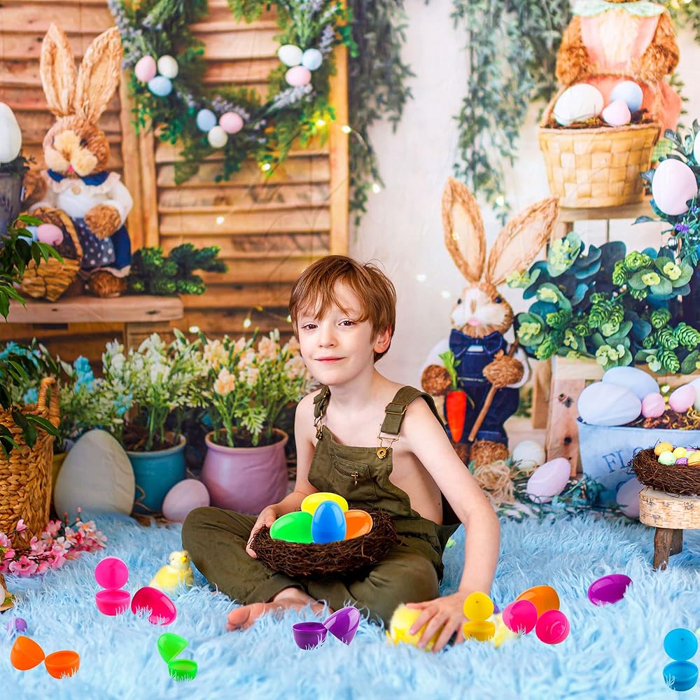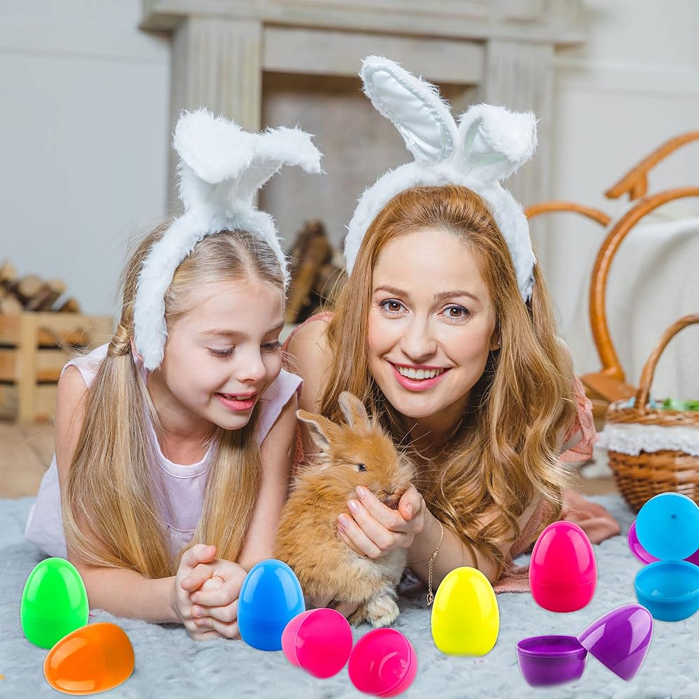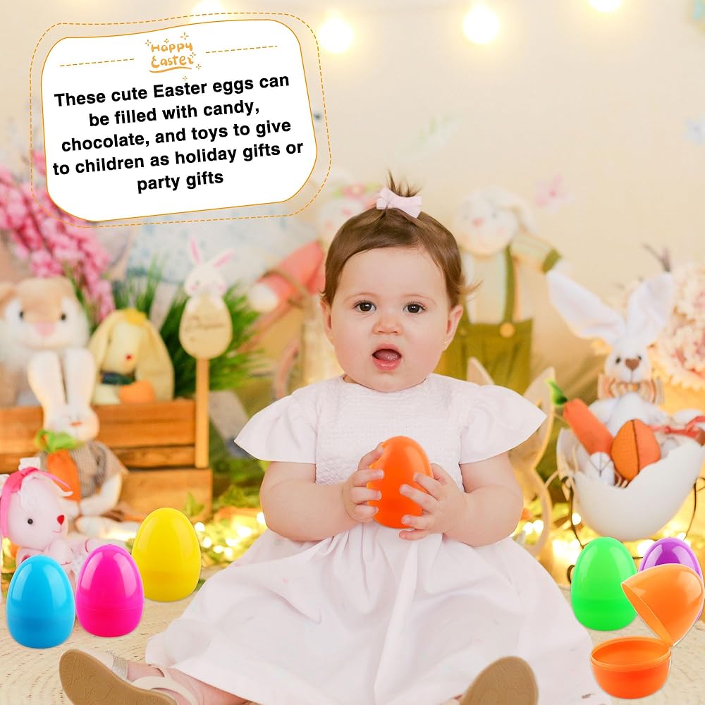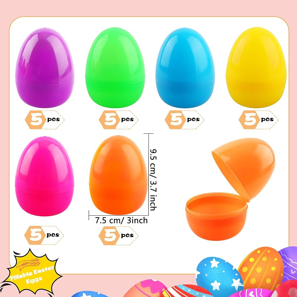 أبعاد بيضة عيد الفصح: يبلغ مقاس كل بيضة عيد الفصح الكبيرة حوالي 3.74 × 2.75 بوصة مع قاعدة مسطحة وألوان زاهية، مثالية لملء الحلوى والقرطاسية والملصقات والألعاب وغيرها كهدايا عيد الفصح أو هدايا الحفلات للأولاد والبنات.