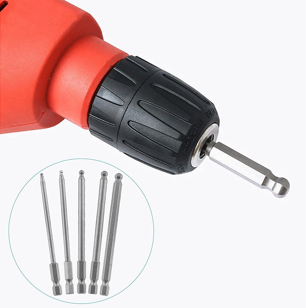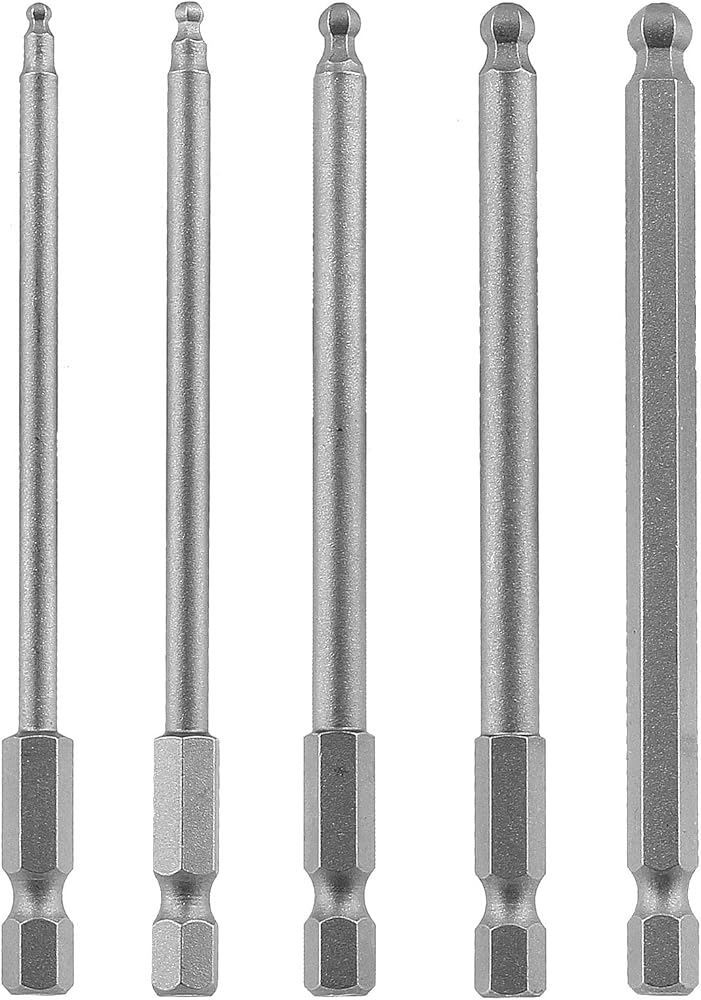 5 قطع من لقم مفتاح ألين ذات نهاية كروية مجموعة سداسية لرأس الكرة، مجموعة لقم مفك براغي برأس كروي متري 2.5 مم - 6 مم، مجموعة رؤوس مفك براغي سداسية من الفولاذ S2 مغناطيسية 1/4 بوصة