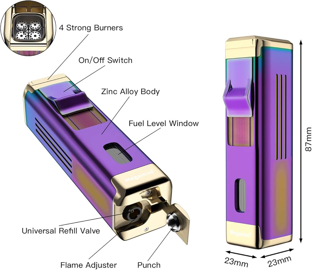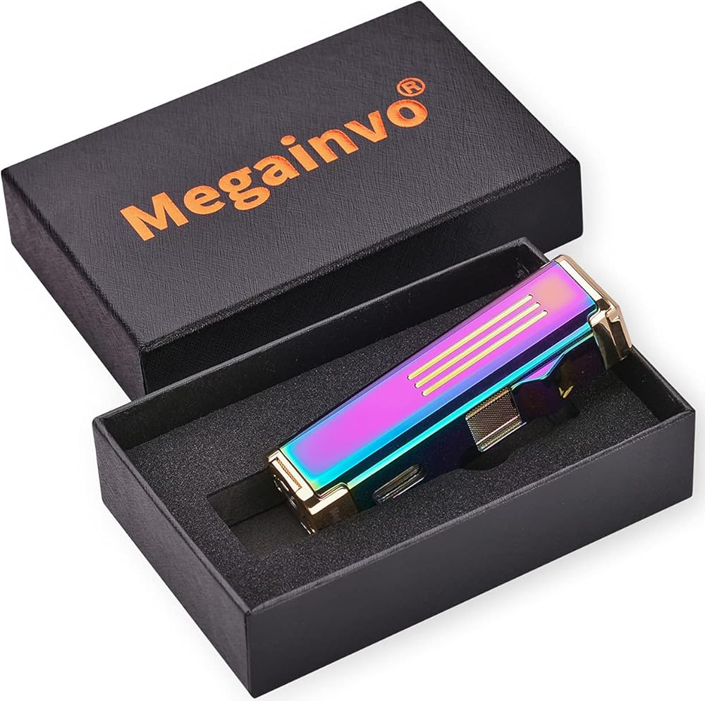❤️[خدمة عملاء مرضية] - تأتي ولاعة الشعلة Megainvo مع صندوق هدايا أنيق وخدمة عملاء ودودة. إذا واجهت أي مشاكل في جودة المنتج أثناء استخدام المنتج. يرجى الاتصال بنا على الفور. سنعيد إليك أموالك أو نرسل منتجًا جديدًا.