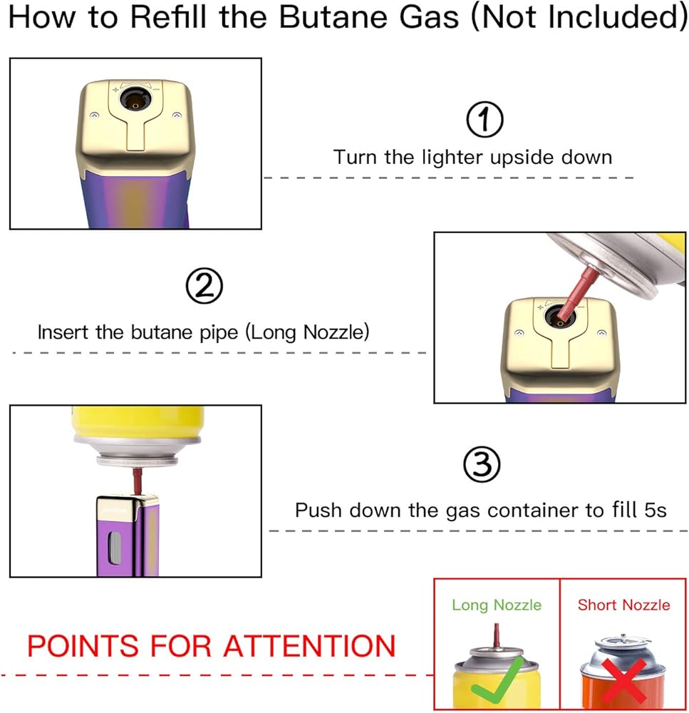 ❤️[ولاعة قابلة لإعادة الملء مع مقياس الوقود] - تتميز ولاعة البوتان بمقياس وقود البوتان المرئي لإعادة التعبئة بشكل مريح. يوصى باستخدام عبوات غاز البيوتان ذات طرف التعبئة الطويل، كما أن البروبان غير متوافق. يرجى إطلاق الغاز المتبقي قبل التعبئة.