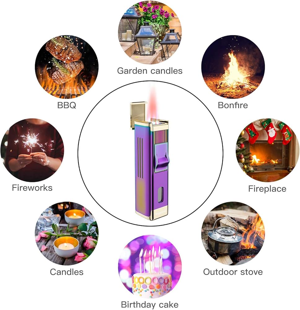 ❤️[شعلات رباعية قوية] - تأتي ولاعة شعلة اللهب النفاثة من ميجاينفو مع شعلات نفاثة رباعية، والتي تتمتع بقوة نيران أكبر بكثير، وقدرة مقاومة للرياح، وإضاءة سريعة من ولاعات اللهب النفاثة الفردية/المزدوجة. يمكن استخدامها لإضاءة مرطبانات الشموع ومواقد الغاز وشواية الشواء والتخييم والألعاب النارية وما إلى ذلك.