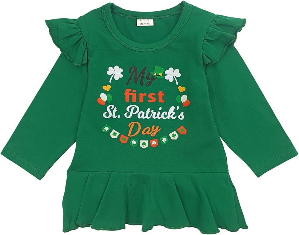 الخامة---ملابس عيد القديس باتريك للفتيات الصغيرات، مصنوعة من مزيج قطني عالي الجودة، مسامي وممتص للعرق للحفاظ على دفء الفتيات الصغيرات في الداخل والخارج في هذا الربيع.