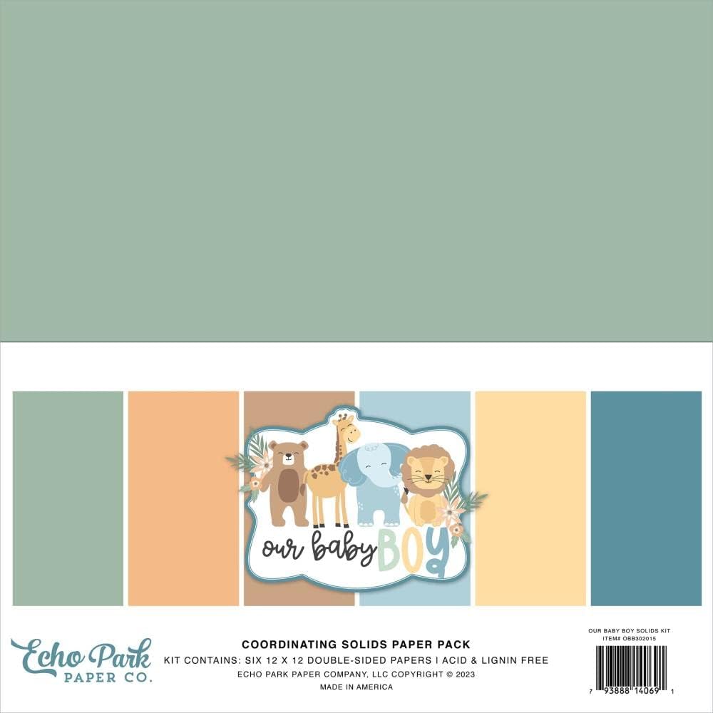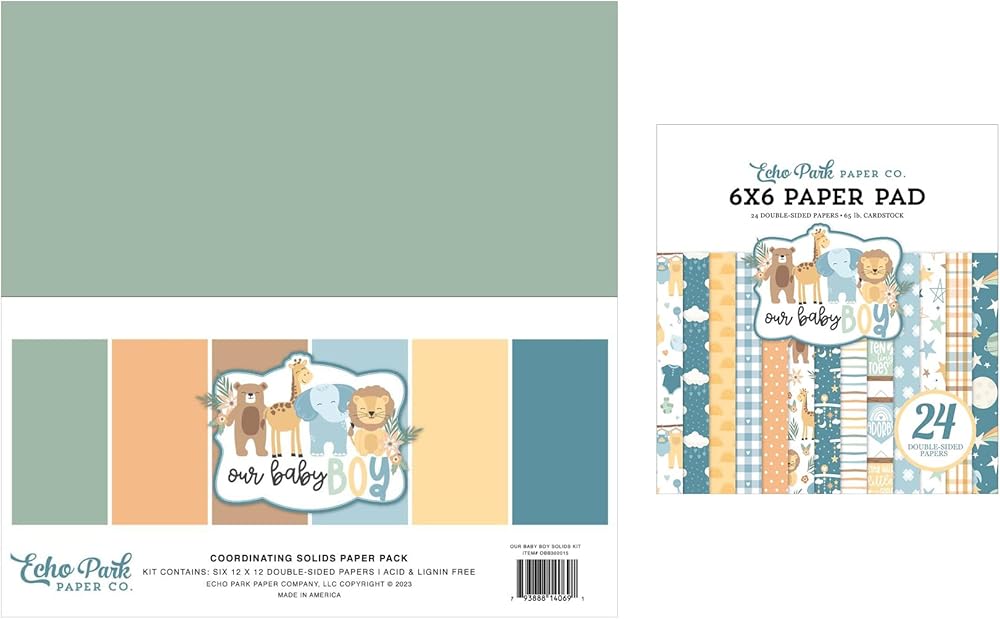 حزمة مجموعة ورق Echo Park: حزمة ورق صلبة مقاس 12 × 12 بوصة من طفلنا الصغير + حزمة ورق مزدوجة الجوانب مقاس 6 × 6 بوصة من طفلنا الصغير