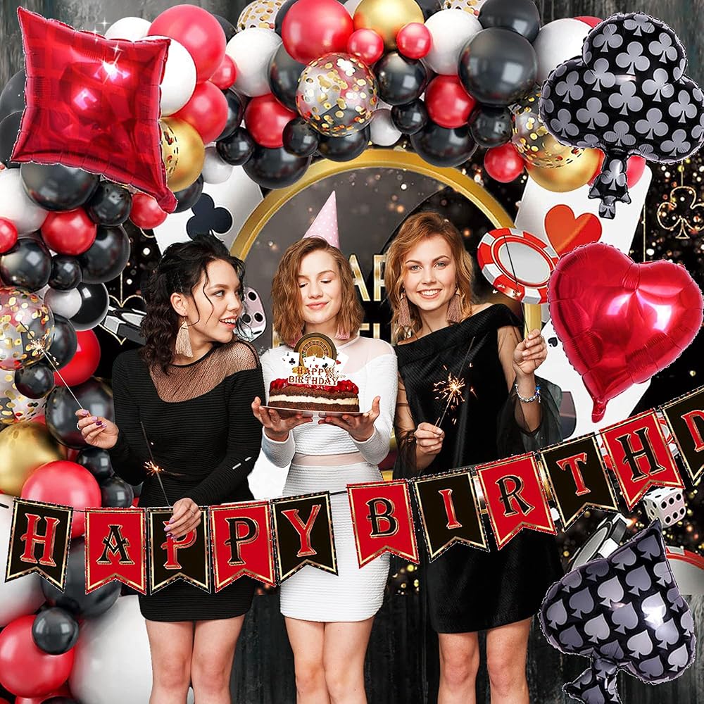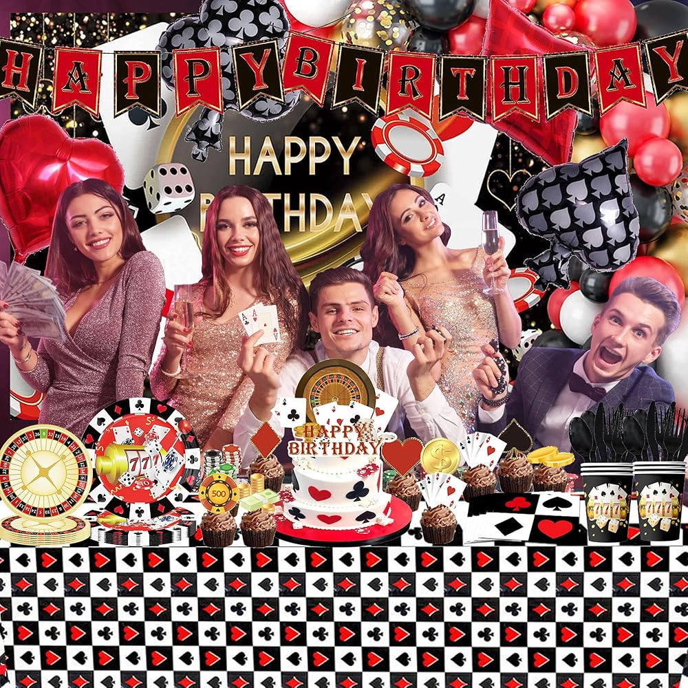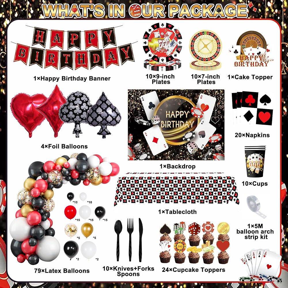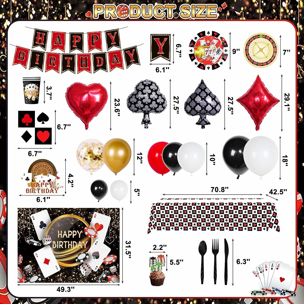 ❤[حفلة بطابع الكازينو] جميع إكسسوارات ديكورات حفلات الكازينو هذه مصنوعة من مواد عالية الجودة، وهذه البالونات ليست سهلة التمزق. الخلفية التي تحمل سمة الكازينو متينة للغاية. يمكن استخدامه للحفلات أو لتزيين منزلك.