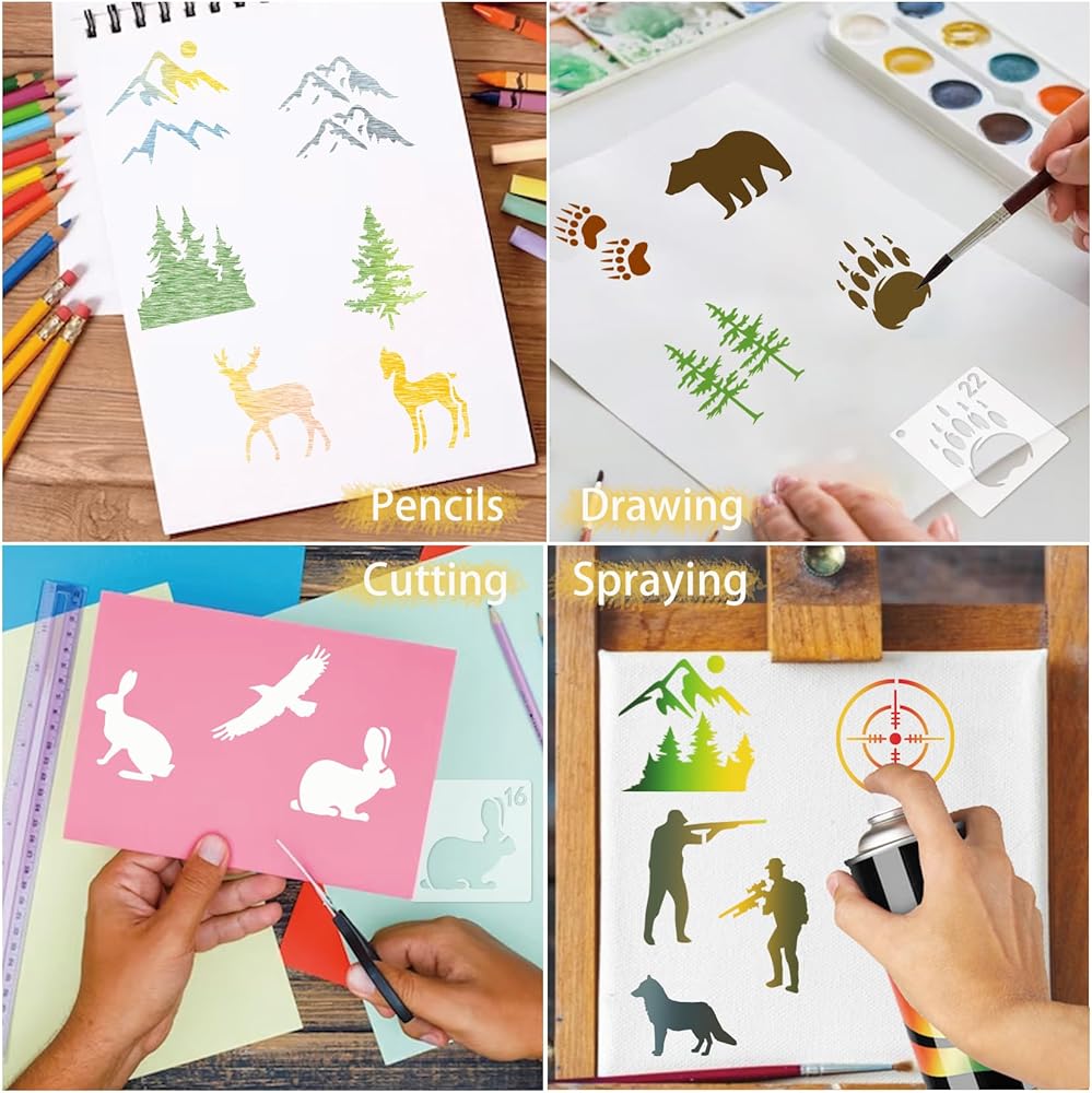استخدام واسع: استنسل طبقات لصنع البطاقات لإنشاء حرف يدوية مختلفة ومشروعات DIY على أي سطح، مثل تزيين لوح الخشب والورق والقماش والنسيج والمعادن والصخور والدفاتر والقميص وصندوق الزراع والكعك والأكريليك وصينية الخشب والحديقة اللافتة، فنون الحائط، الطاولة، الخزانة، الوسادة، الأثاث، رسم ديكور المنزل إلخ.