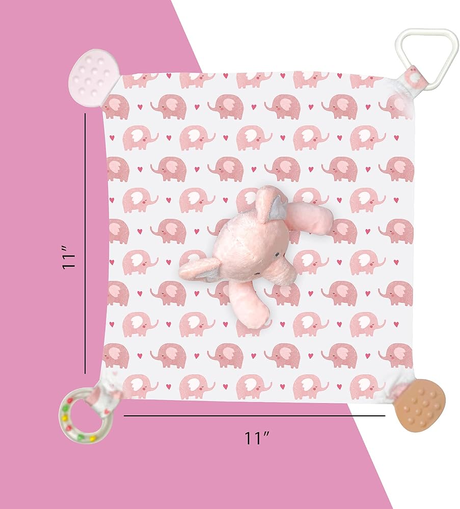 ANIMAL TAGGY BLANKET: Great For Newborn Girl This Adorable Security Blanket Has A Safari Theme With A Super Cozy Feel. SUPER CUTE: These Lovies For Babies Are The Perfect Addition To Your Baby Nursery & Are Great For Newborns To Snuggle With. GREAT FOR INFANTS: Your Infant Will Absolutely Fall in Love With This Lovey, It Features Playful & Teether Attachments & Is Great For Your Baby To Play With. QUALITY: Features High Grade Stitching To Prevent The Fabric & Toys From Seperating. Its Cozy Fabric Will Keep It's Color & Softness Even After Many Uses. Measures 14"x14". GREAT SHOWER GIFT: A Great Baby Essential For Your Own Home, Or A Great Gift For A Baby Shower, This Security Blanket Is The Perfect Present For Any Mom Or Dad To Be.