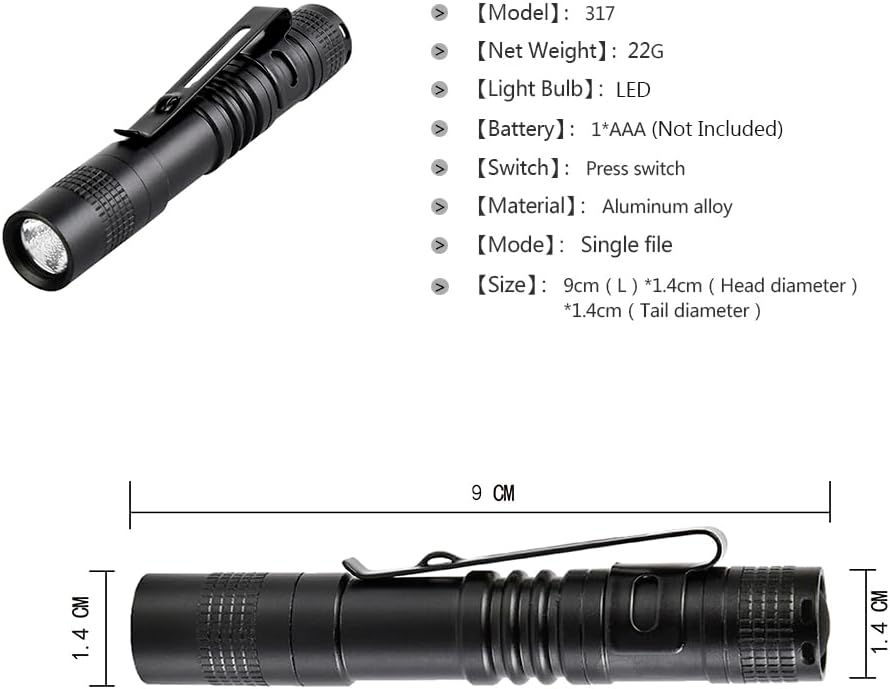 Proper size: each pen flashlight is about 8.8 cm/ 3.5 inches, with portable mini size and pen shape, which makes this pocket flashlight easily put into your pocket or bag and convenient for you to take out
