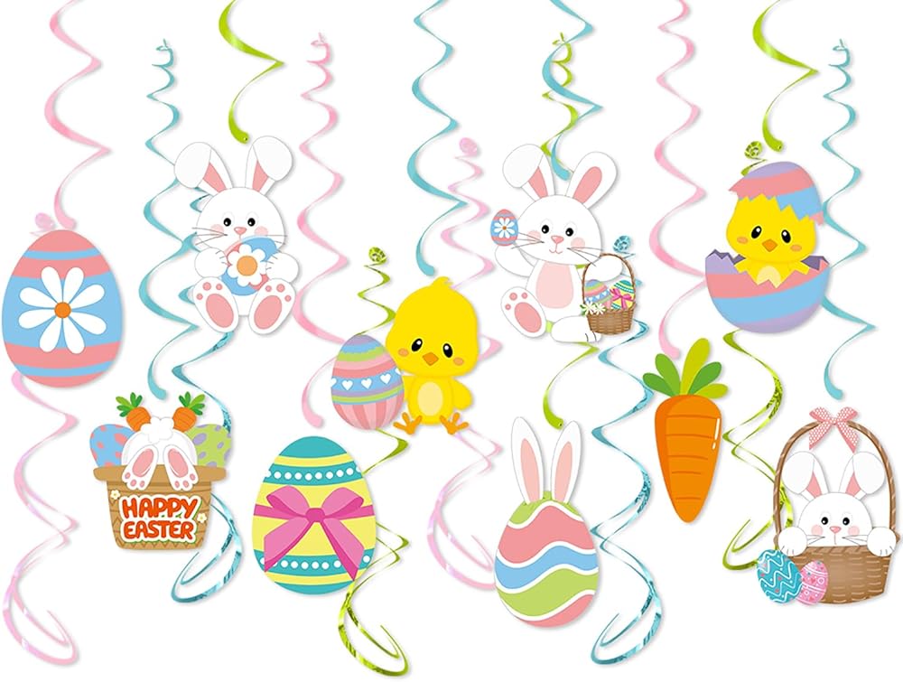 • 🐣【Easter Hanging Decoration】Include 16 pcs colorful Easter hanging decorations. Vivid and festive Easter foil spiral streamers decorations ideal Easter party decorations.