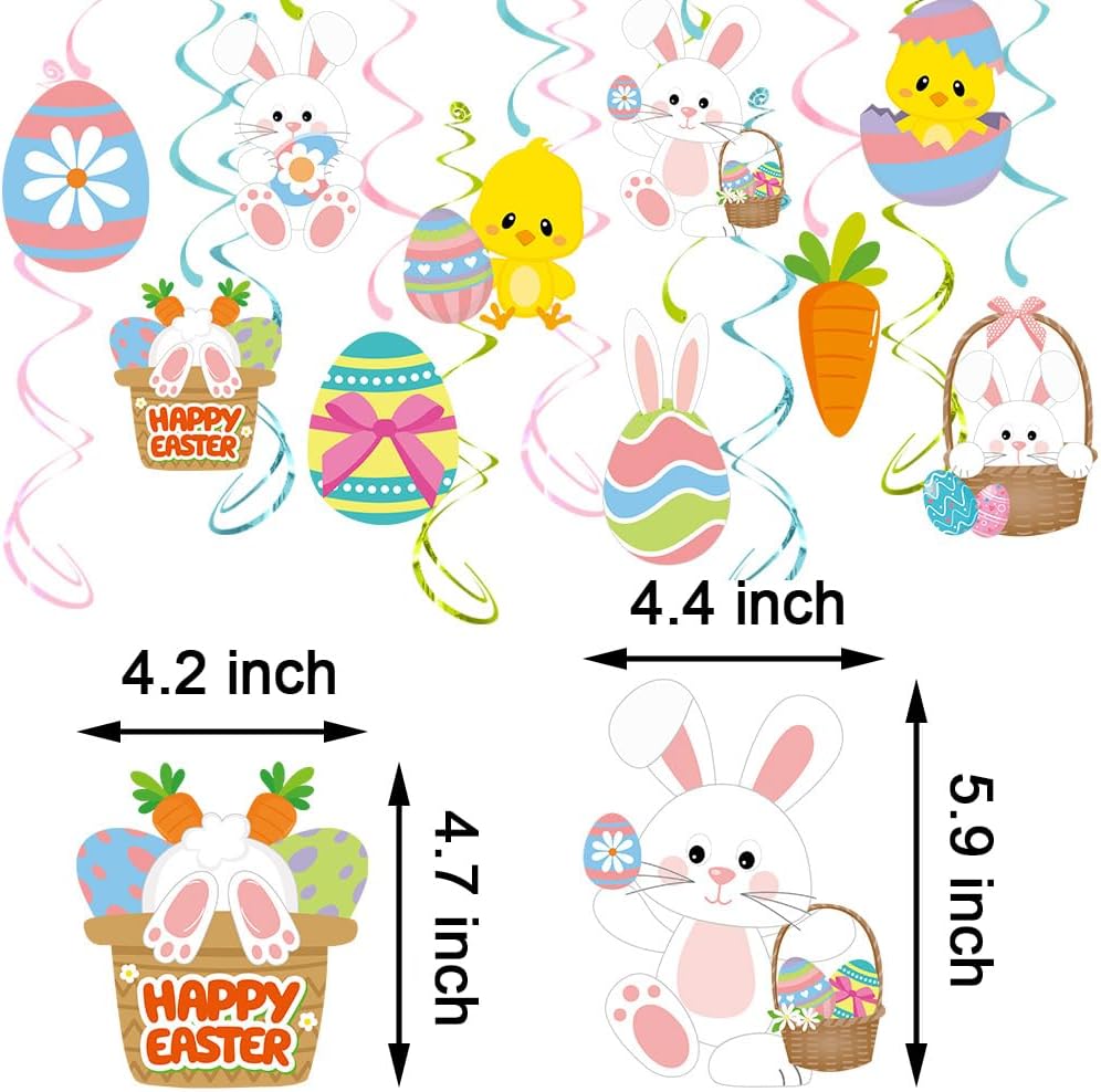 • 🌈【Brilliant Easter Hanging Swirl Decor】Easter hanging swirls decorations length of natural suspension approx 29.5 - 33.5inch (not contain length of the pattern), made of the PVC foil and paper card material, lightweight and flexible. Shimmering Easter swirl spiral hanging for Easter indoor ceiling decoration.