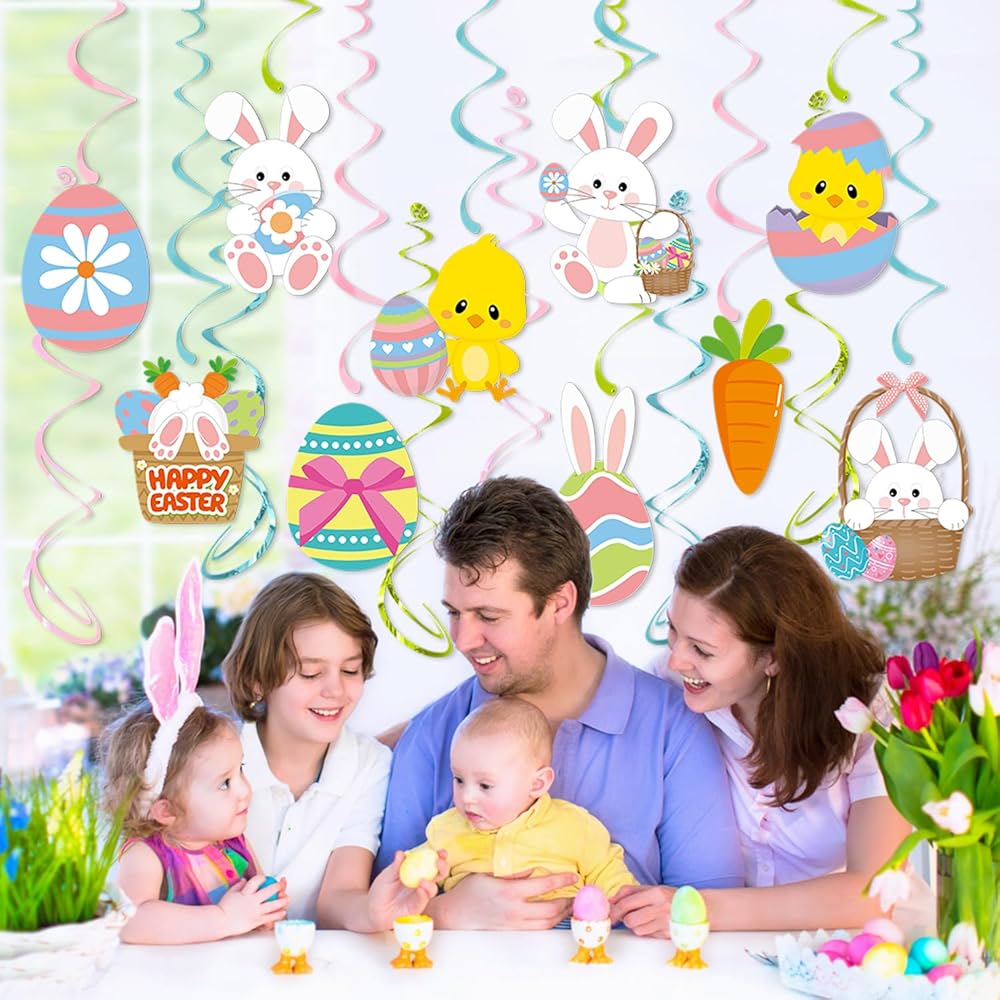 16 قطعة من دوامات عيد الفصح المعلقة، لا يمكنك صنعها بنفسك، بيض أرنب عيد الفصح، زينة سقف معلقة، لوازم حفلات عيد الفصح الربيعية، دوامات سقف من رقائق معدنية لامعة
