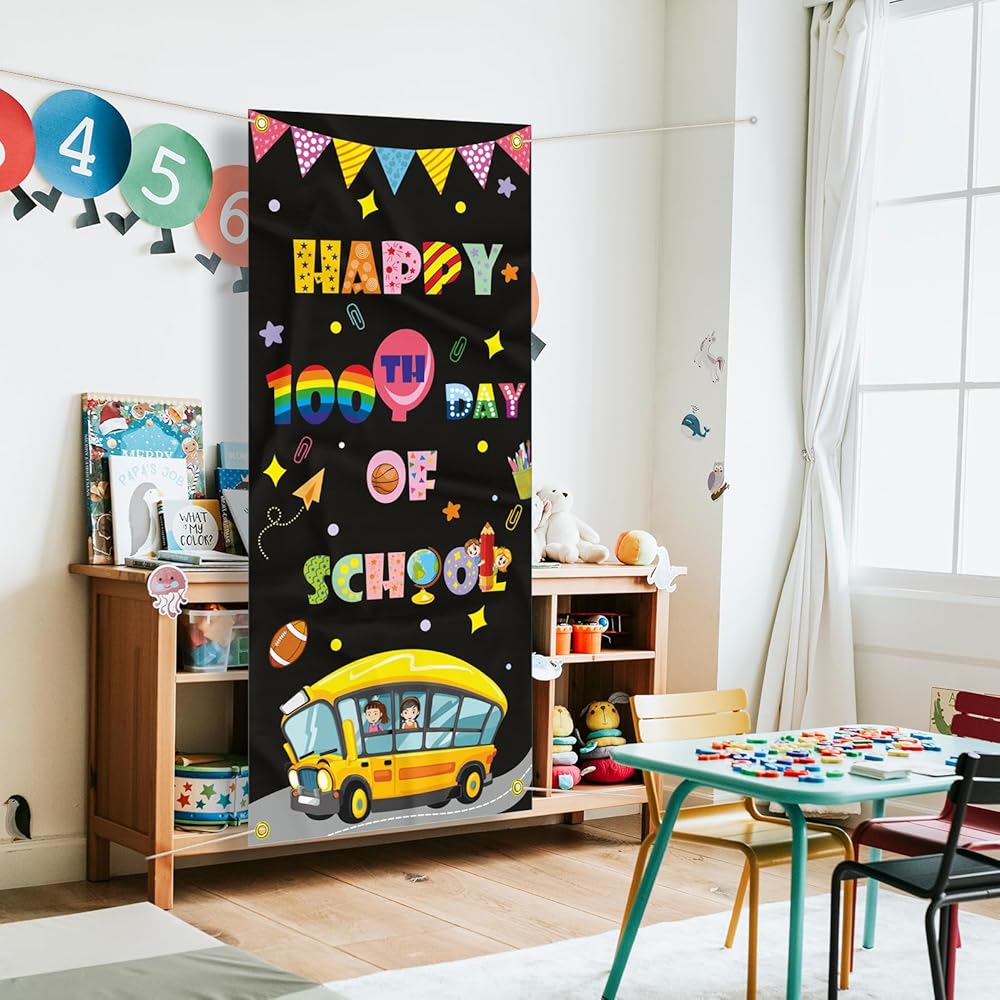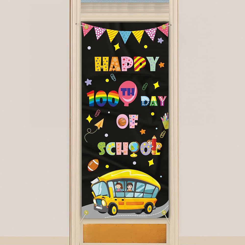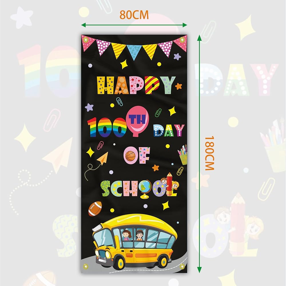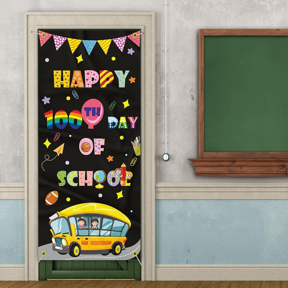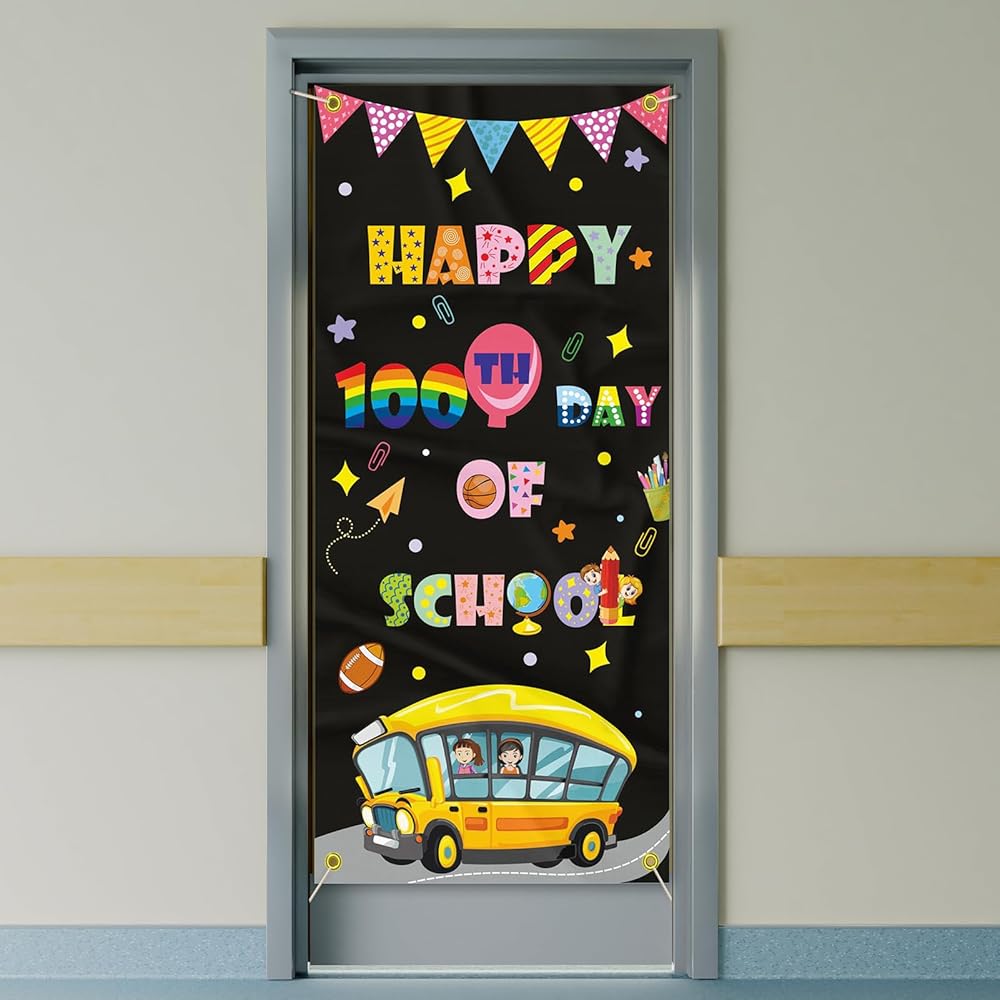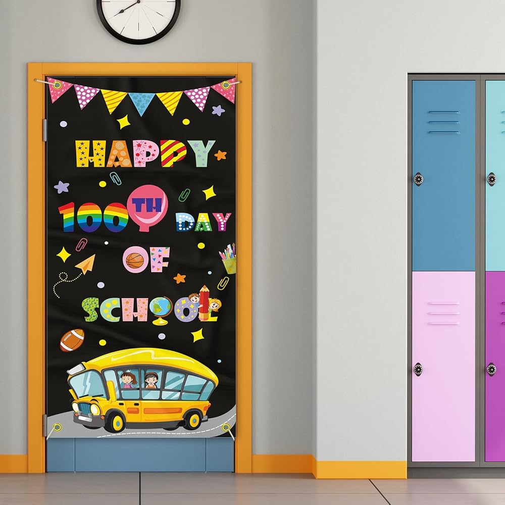 ديكورات غطاء باب المدرسة ليوم 100 سعيد، لافتة مدرسية للأطفال في مرحلة ما قبل المدرسة ومستلزمات تزيين المدرسة الابتدائية