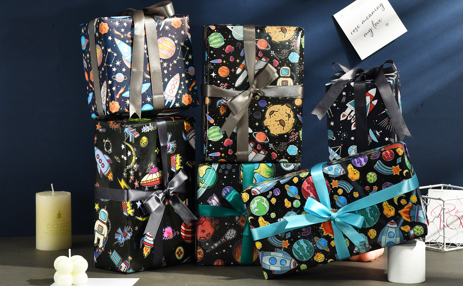 اجعل تغليف الهدايا أجمل: امنح هدية خاصة لمحبي الفضاء، وأظهر إبداعك واترك انطباعًا باستخدام ورق تغليف الفضاء الخاص بنا