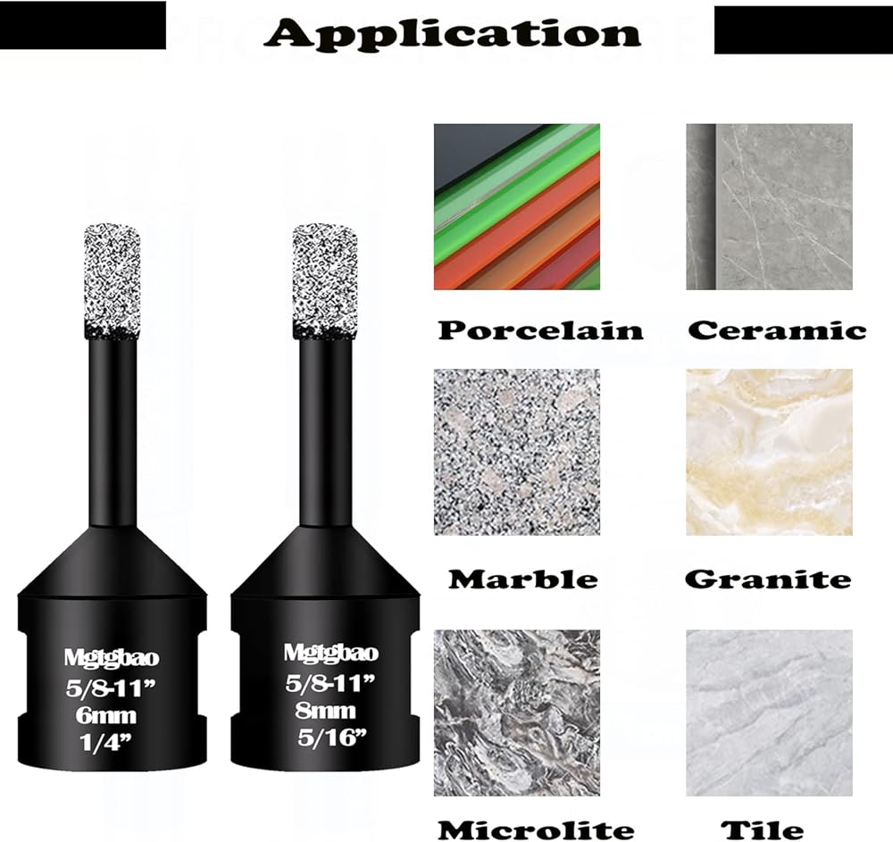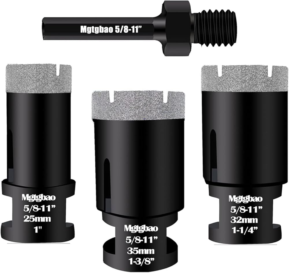 Mgtgbao 1"(25mm), 1-1/4"(32mm), 1-1/2"(38mm) with 3/8 Hex Shank Vacuum Brazed Diamond Drill Core Bits for Ceramic Granite Marble Tile Stone Glass Hard Materials (not for Wood)