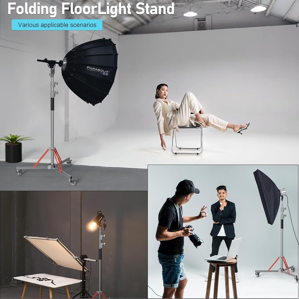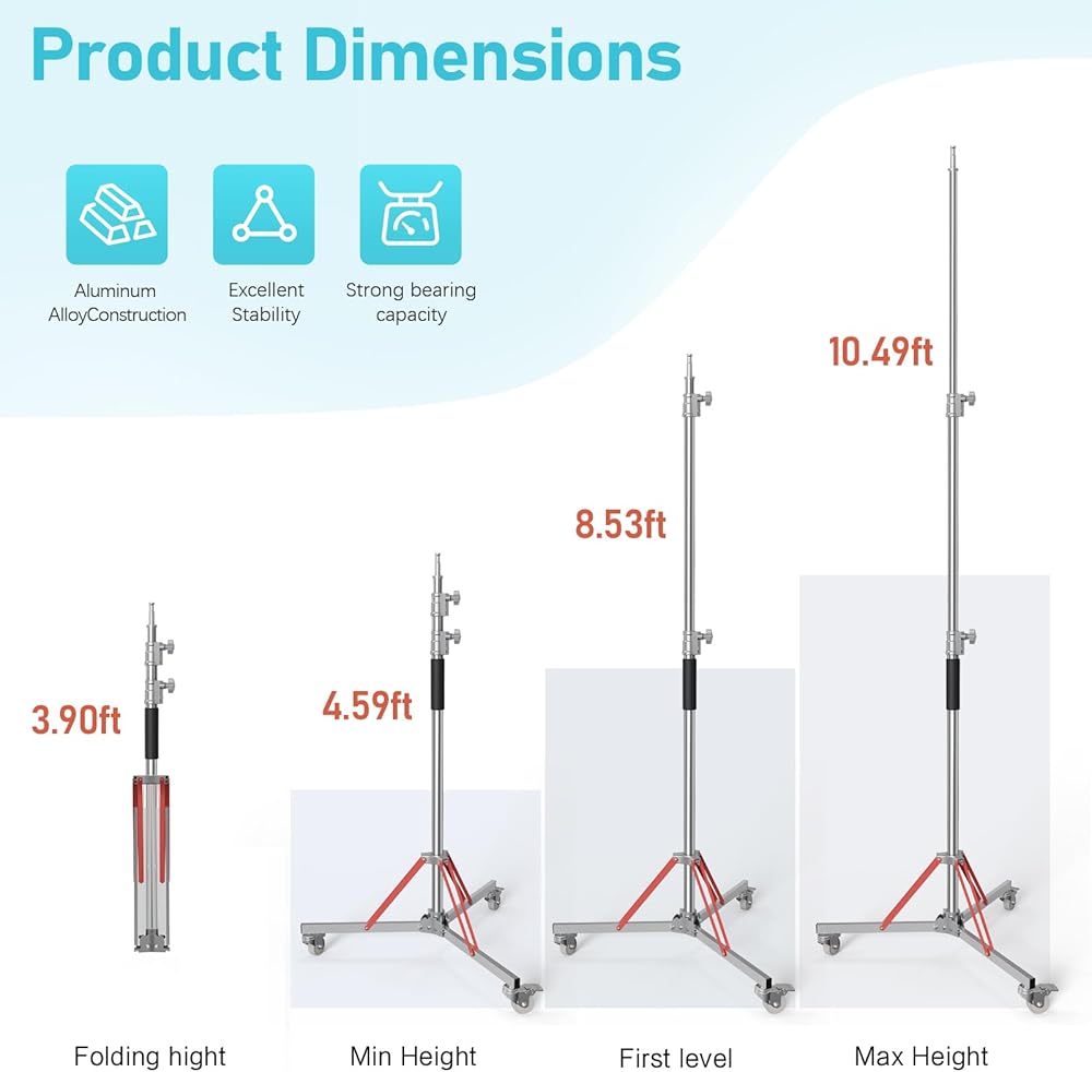 حامل خفيف عالي التحمل مع عجلات، حامل تصوير قابل للتعديل مصنوع من الفولاذ المقاوم للصدأ بنسبة 100% مناسب للاستخدام مع Softbox وMonolight والعاكس.