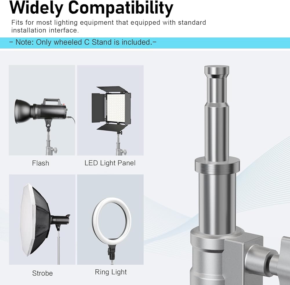 • 【حامل عالي التحمل ووظيفة متعددة الاستخدامات】حامل التصوير الفوتوغرافي هذا مصنوع من الفولاذ المقاوم للصدأ الصلب بنسبة 100%، يوفر الحامل C ذو التصميم المحسن متانة طويلة الأمد لدعم معدات التصوير الفوتوغرافي شديدة التحمل مثل المظلة، والستروب، والضوء الأحادي، والعاكس، والصندوق الناعم. والكاميرا والفلاش والمزيد.