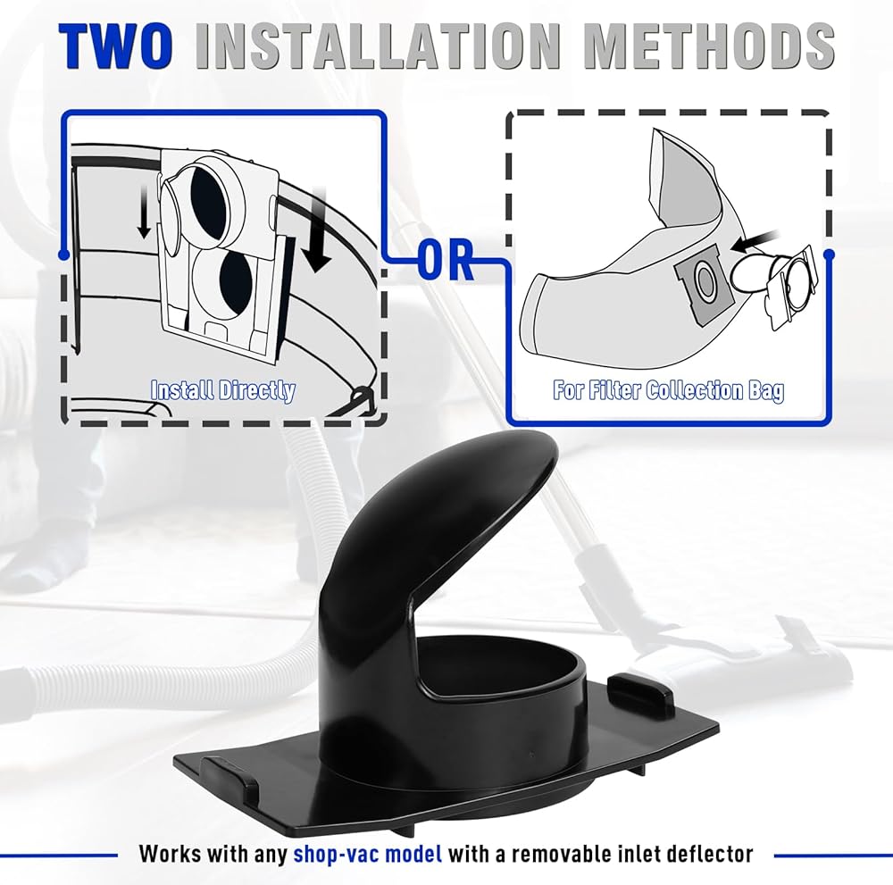 سهولة التركيب - يمكن تركيبه مباشرة وعلى كيس تجميع الفلتر؛ قم بالتركيب مع توجيه العاكس من اليسار إلى اليمين، مما يلغي الحاجة إلى تغيير الاتجاه أثناء التبديل بين الالتقاط الرطب والجاف.
