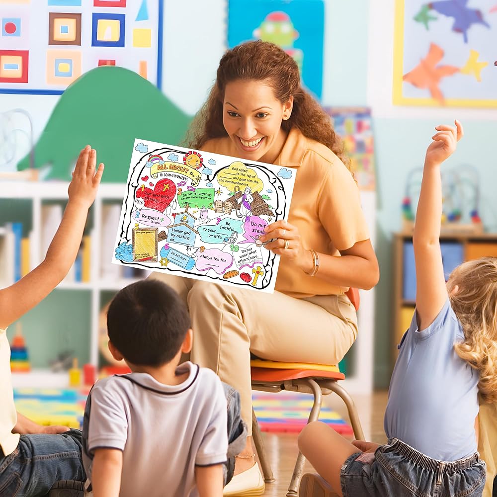 ممتعة ومتعددة الاستخدامات: يمكن استخدام ملصق الوصايا العشر الخاص بنا في مجموعة متنوعة من الإعدادات، بما في ذلك المنزل، والفصول المدرسية، وفصول مدارس الأحد، وأنشطة الكنيسة، والتجمعات العائلية.