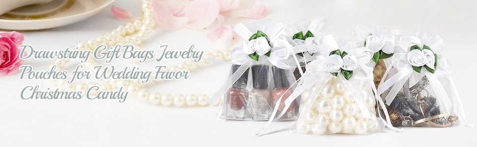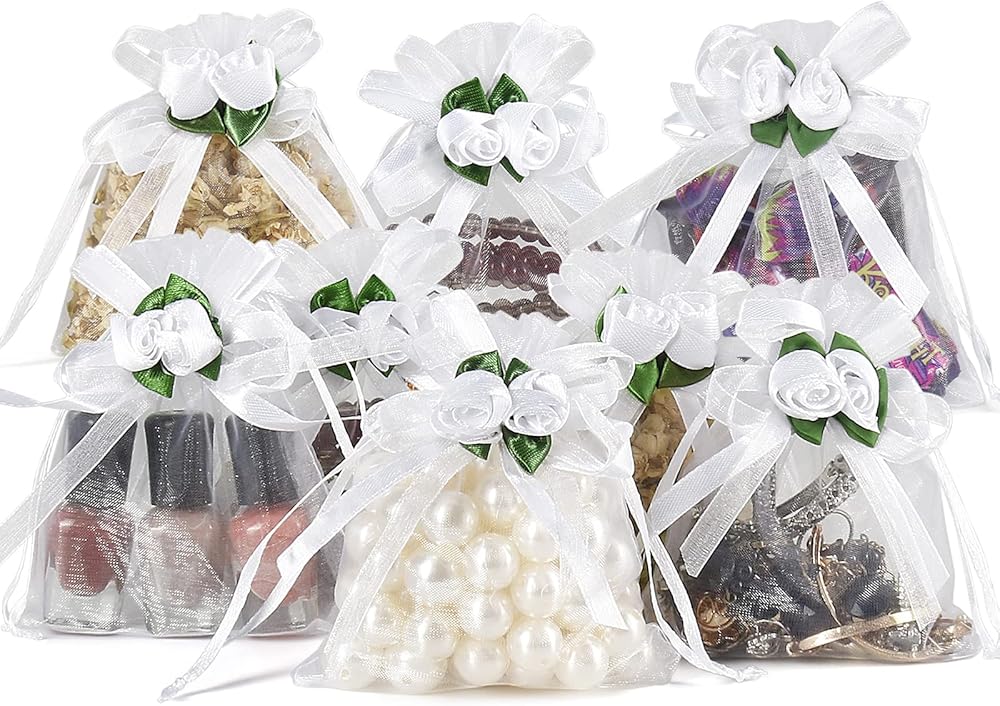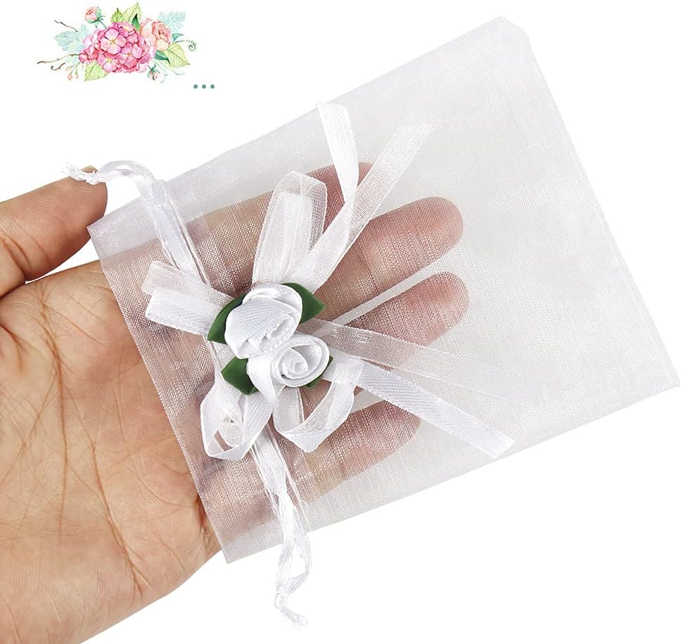 خامة فاخرة - هذه الحقائب المصنوعة من الأورجانزا الوردية البيضاء مصنوعة من الأورجانزا الشفاف، والرباط مصنوع من الساتان. تعتبر أكياس الأورجانزا ذات الألوان الزاهية جيدة لتعبئة العينات الصغيرة والمجوهرات