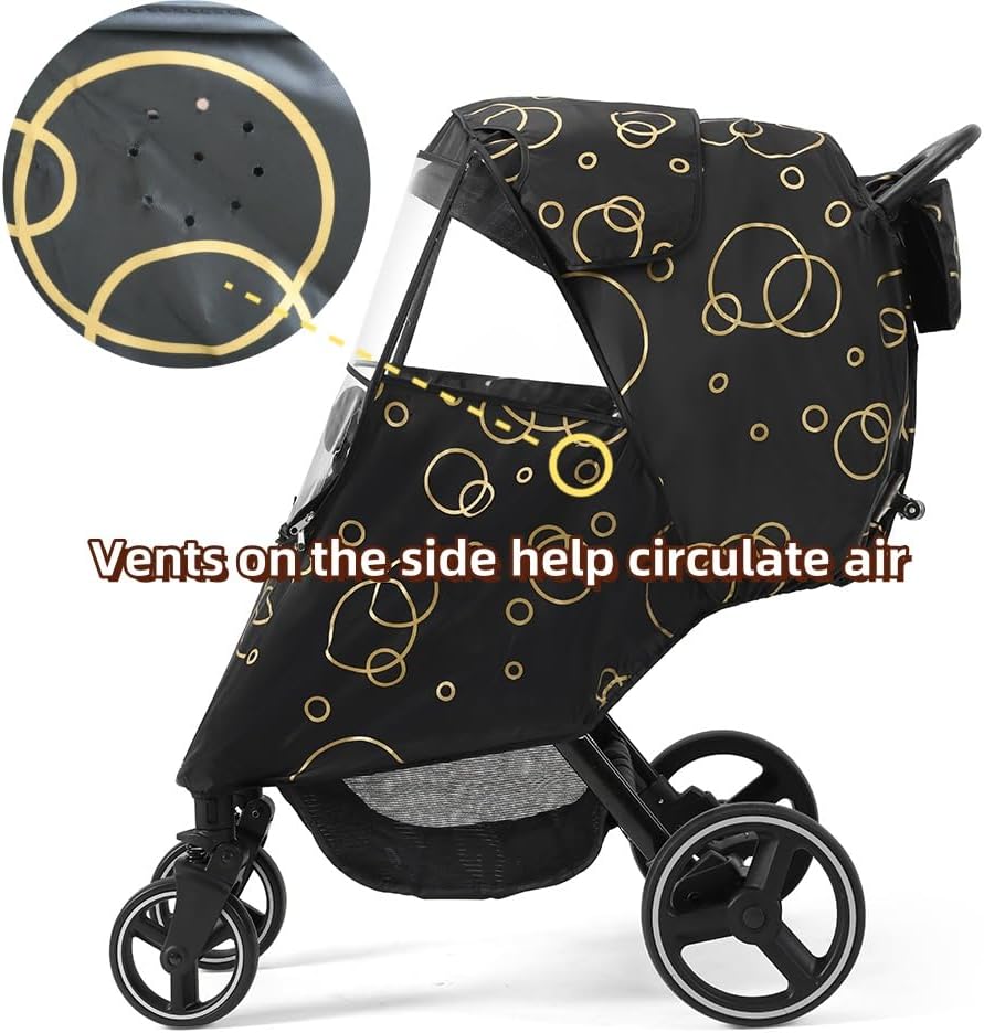 【WIDE APPLICATION】:The lightweight stroller cover is made in universal size and fits most standard size strollers. This rain cover is easy to install and quick to remove, convenient for parents to use.