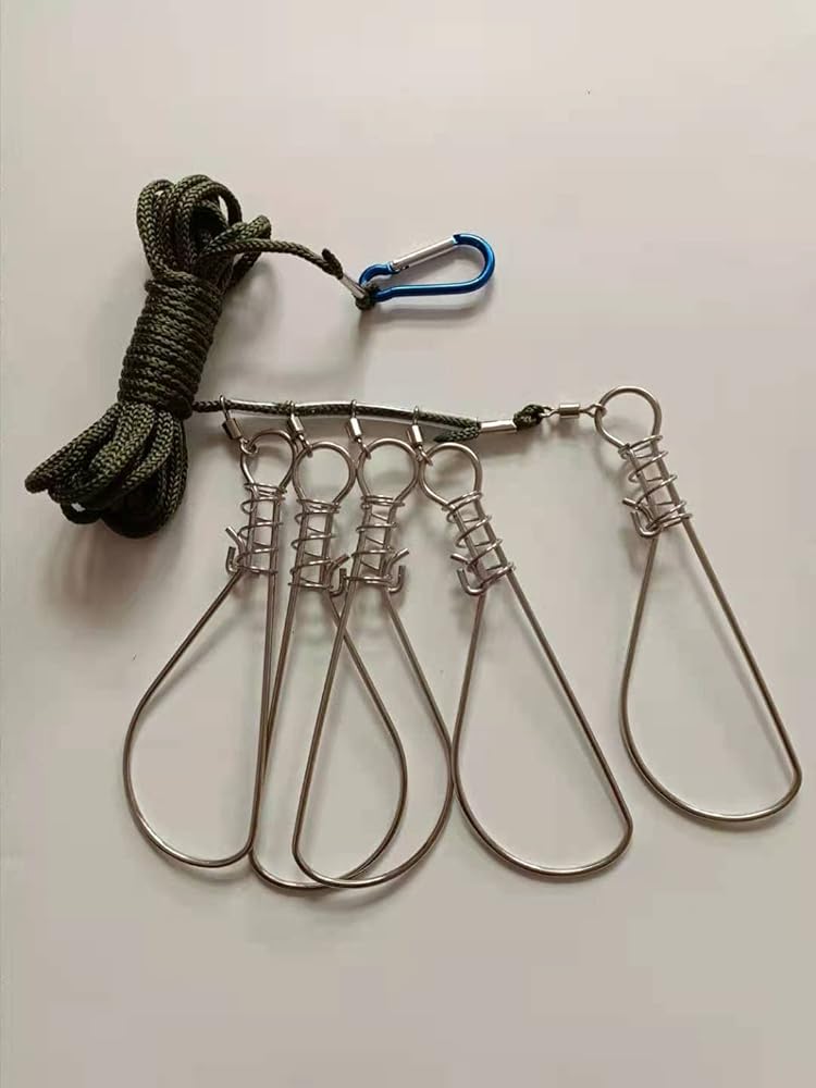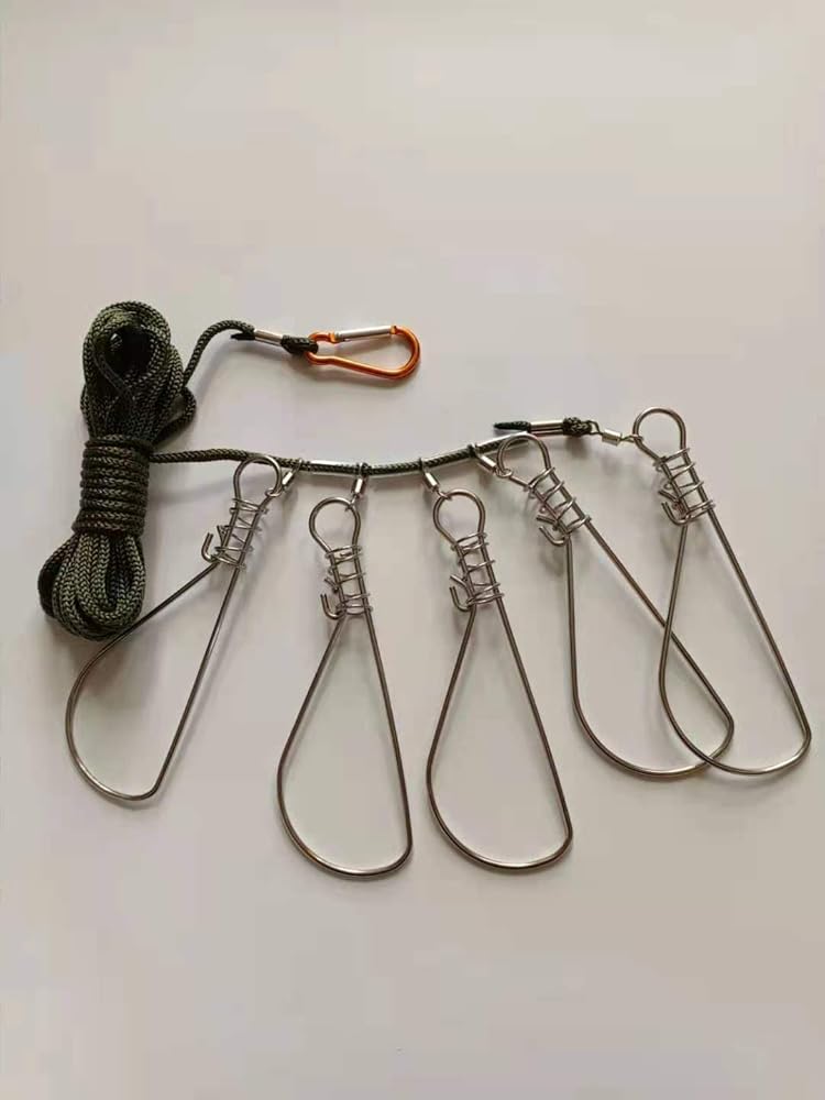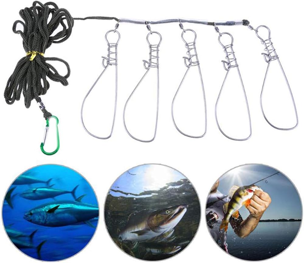 مشبك سترينجر لصيد الأسماك من بيسبورتبل، مجموعتان من سترينجر السمك مع 5 أزرار كبس من الفولاذ المقاوم للصدأ - قفل/حامل سمكة للمشي لمسافات طويلة والصيد في الهواء الطلق (لون عشوائي)
