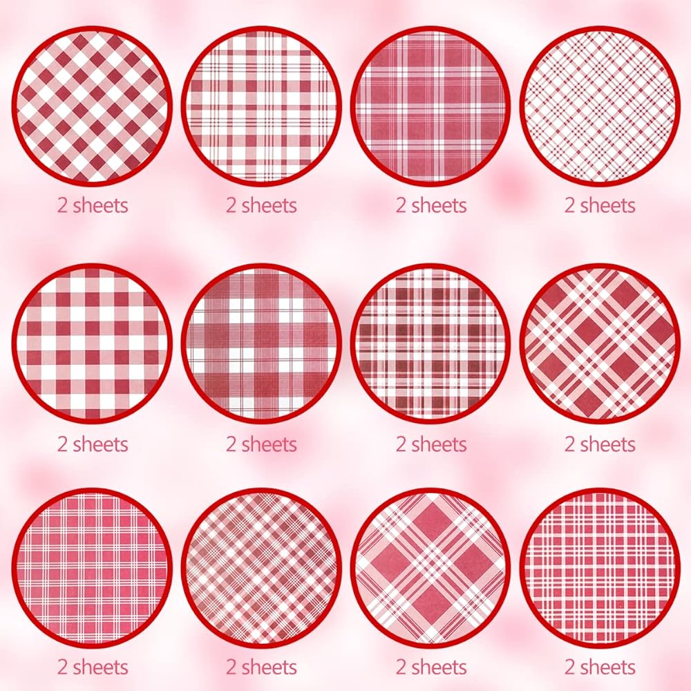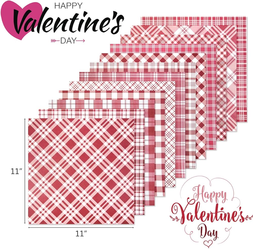 خامة عالية الجودة: ورق بنمط مربعات عيد الحب المنقوش مصنوع من أجود أنواع الورق، كل ورقة مطبوعة بنمط مربعات الجاموس الكلاسيكي والفريد من نوعه، وألوان جذابة، ومناسبة لصنع مستلزمات عيد الحب؛ سهلة الطي، ويمكن تطبيقها على العديد من العناصر الحرفية