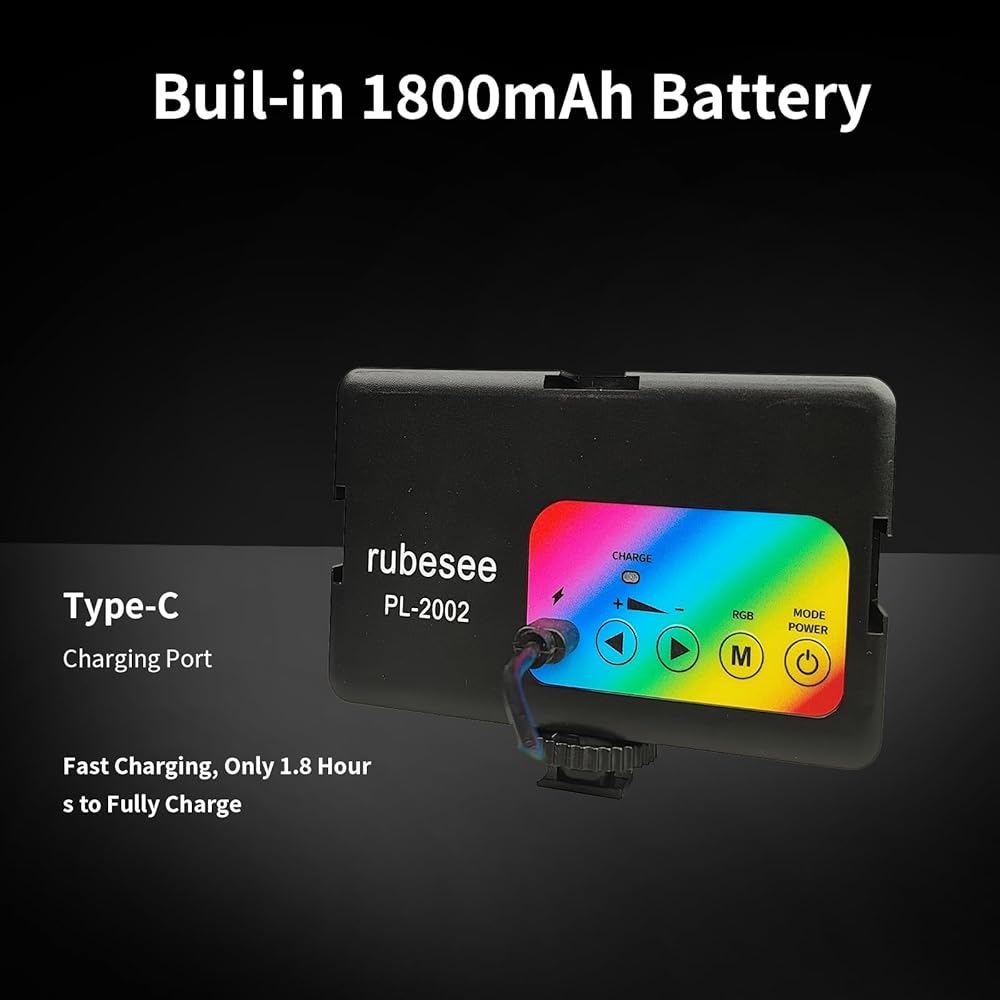 ضوء LED للكاميرا القابلة لإعادة الشحن: بطارية ليثيوم مدمجة 1200 مللي أمبير، وقت الشحن 1.2 ساعة، الحد الأقصى لإخراج السطوع يصل إلى 60 دقيقة، الحد الأدنى لإخراج السطوع يصل إلى 438 دقيقة
