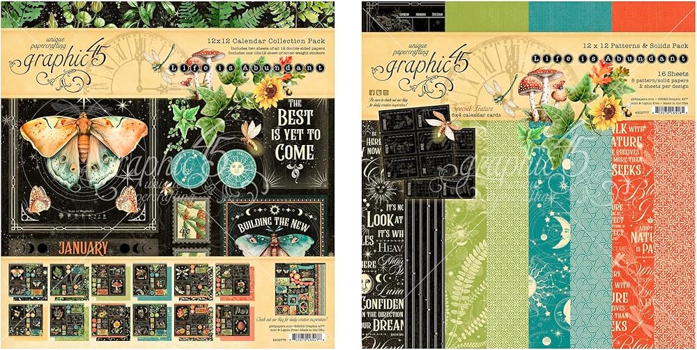 Graphic 45 Collection Bundle - 12 x 12 Collection Pack + 12 x 12 Doublesided Paper Pack Collection Pack: 16 double-sided sheets - 2 each of 8 designs and two unique 6 x 12 inch sticker sheets - Cover-weight stickers are acid and lignin free