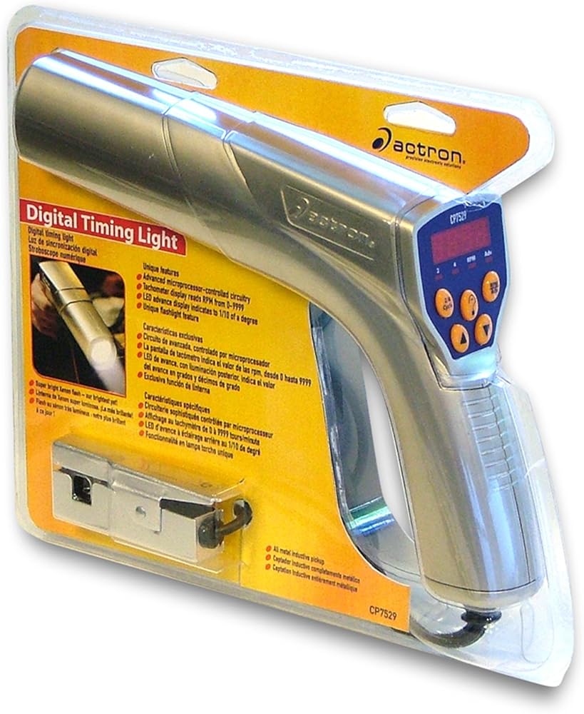 يتميز مصباح التوقيت الرقمي CP7529 من Actron's CP7529 بدوائر يتم التحكم فيها بالمعالجات الدقيقة ويتم تحميلها بميزات متقدمة بما في ذلك شاشة LED ساطعة ومصابيح مؤشر الوضع، ومصباح زينون