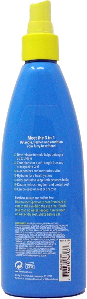 PetBrush من WetBrush، بلسم فك تشابك الشعر والتحكم في الرائحة للكلاب 3 في 1