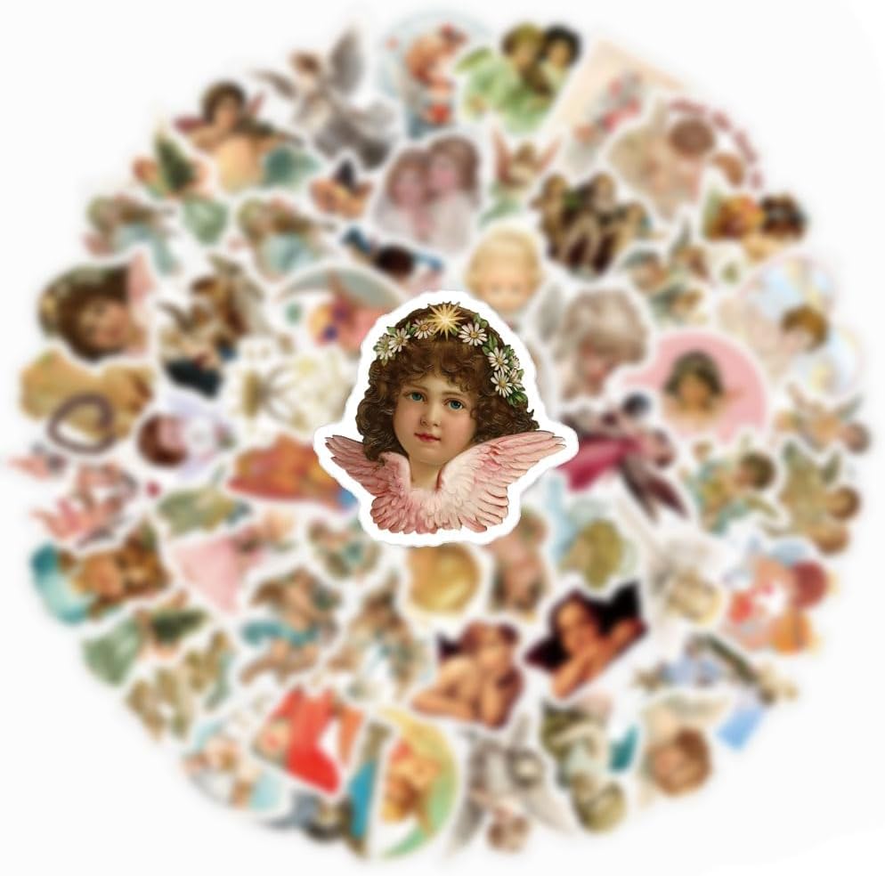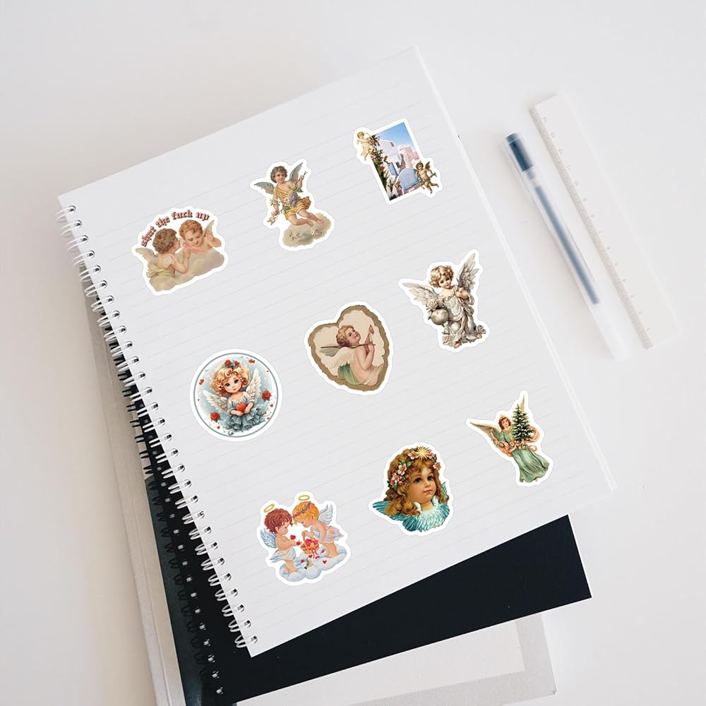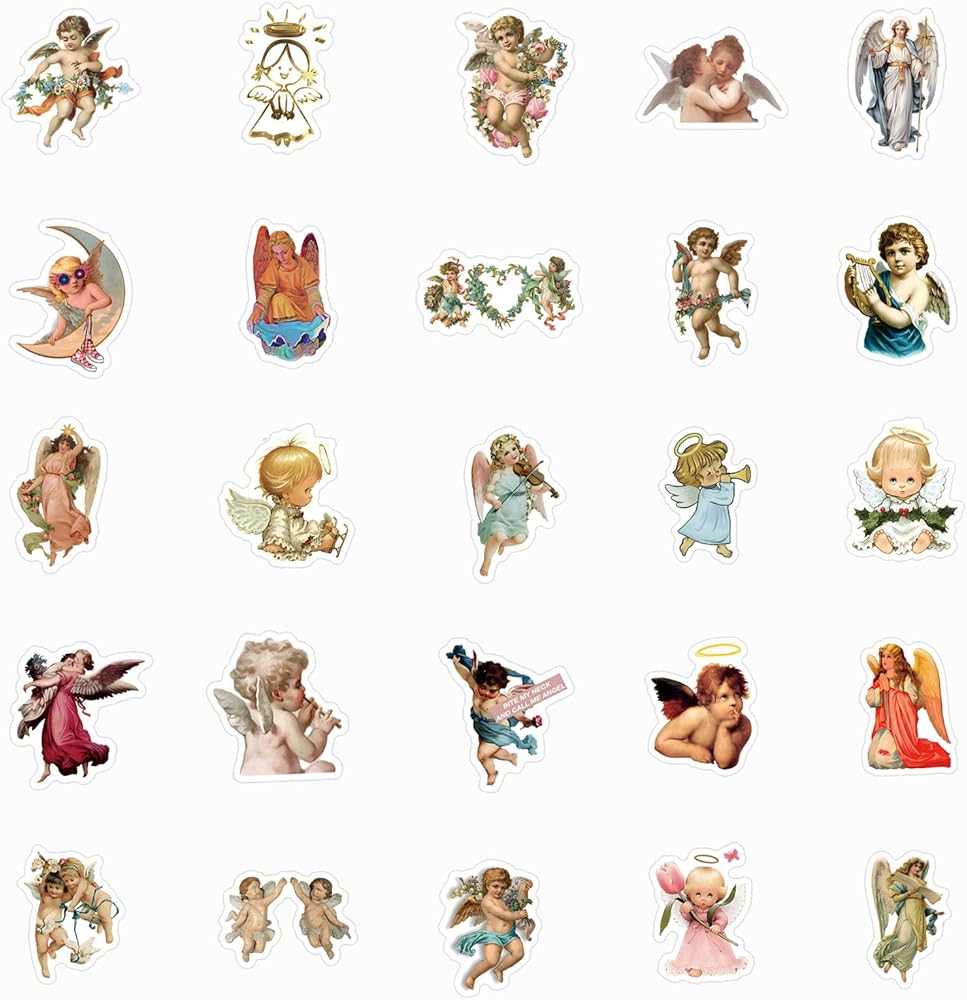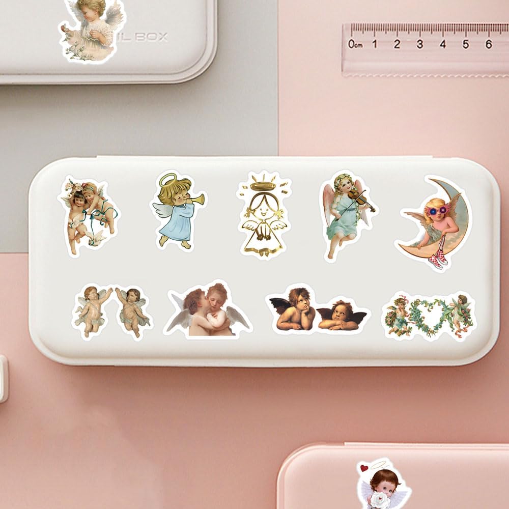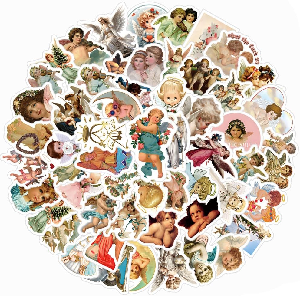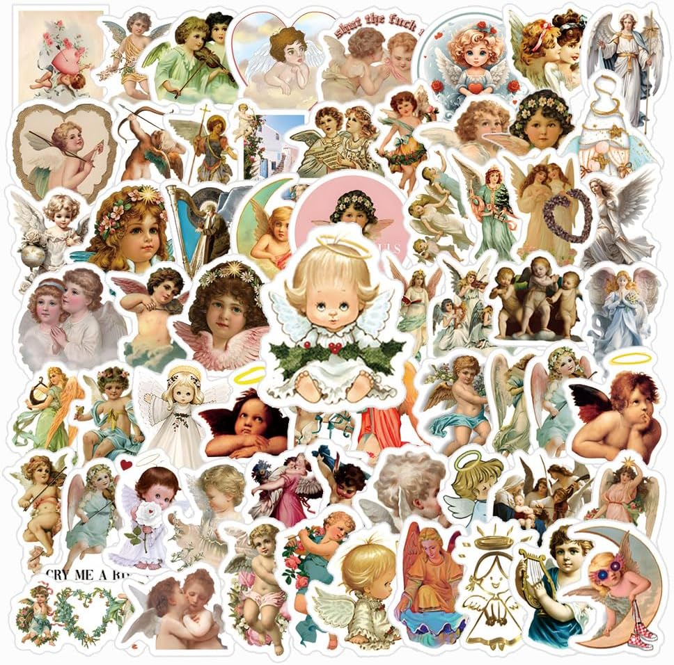 73 قطعة من ملصقات الرسوم المتحركة اللطيفة المقاومة للماء على شكل ملاك عتيقة للأطفال والبنات والأولاد والمراهقين والبالغين لأعياد الميلاد والهالوين لوازم تزيين الحفلات المفضلة لزجاجة المياه والكمبيوتر المحمول والدراجة
