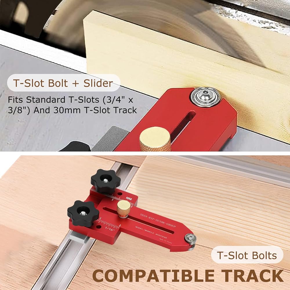 توافق جيد: مناسب للطراز 30، الطراز 45، الطراز 19، الطراز 20 Miter T-rail، الطراز 74 T-rail، الطراز 50/66 المركب على شكل حرف T؛ متوافق مع الحز المائل القياسي 3/4 بوصة × 3/8 بوصة؛ تعمل قضبان ميتري بفتحة T مقاس 30 مم مع معظم المناشير الشريطية ومناشير الطاولة وأجهزة التوجيه القياسية في السوق.