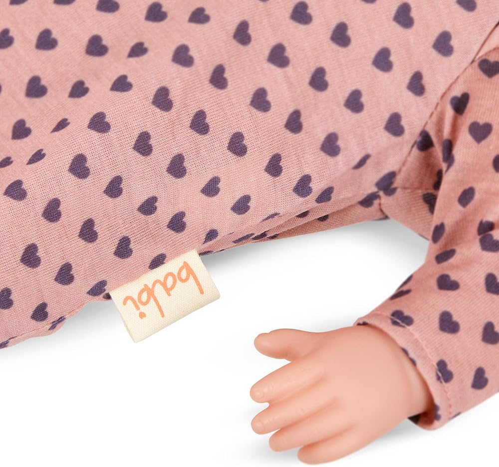 بابي من باتات - دمية طفلة مقاس 14 بوصة وسرير - لون بشرة متوسط فاتح وعيون رمادية - بيجامة منقط على شكل قلب قابلة للإزالة مع لهاية - مهد هزاز للعب التظاهري - ألعاب للأطفال من سن 3 سنوات فما فوق