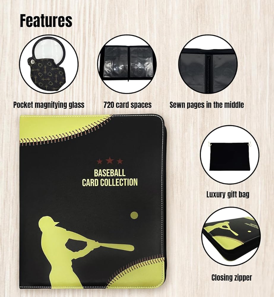 حافظة بطاقات البيسبول 720 جيبًا، أكمام بطاقات البيسبول ذات التصميم الأصلي، حقيبة هدايا أنيقة لحامل بطاقات البيسبول، تتجنب إتلاف البطاقات حافظة البطاقات الرياضية، حافظة بطاقات زجاجية مكبرة للهدايا