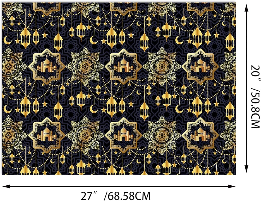 12 قطعة من ورق تغليف هدايا عيد مبارك، 4 تصميمات ورق تغليف هدايا رمضان عيد الفطر ورق حرفي مسطح مطوي للعطلات الإسلامية لتغليف هدايا عيد الميلاد، 20 × 27 بوصة (أ)