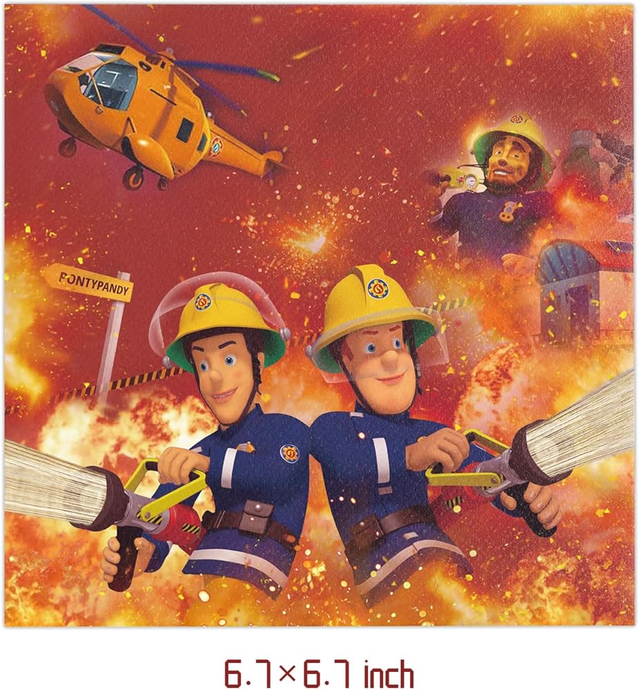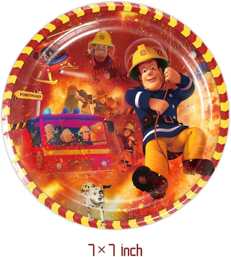 - تشمل العبوة: 20 قطعة من الأطباق و20 قطعة من المناشف الورقية لحفلة سوبر فايرمان سام