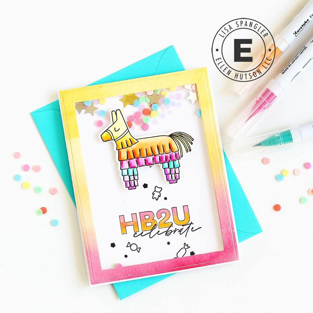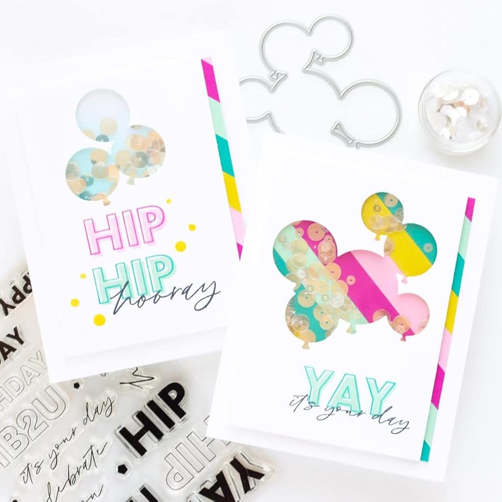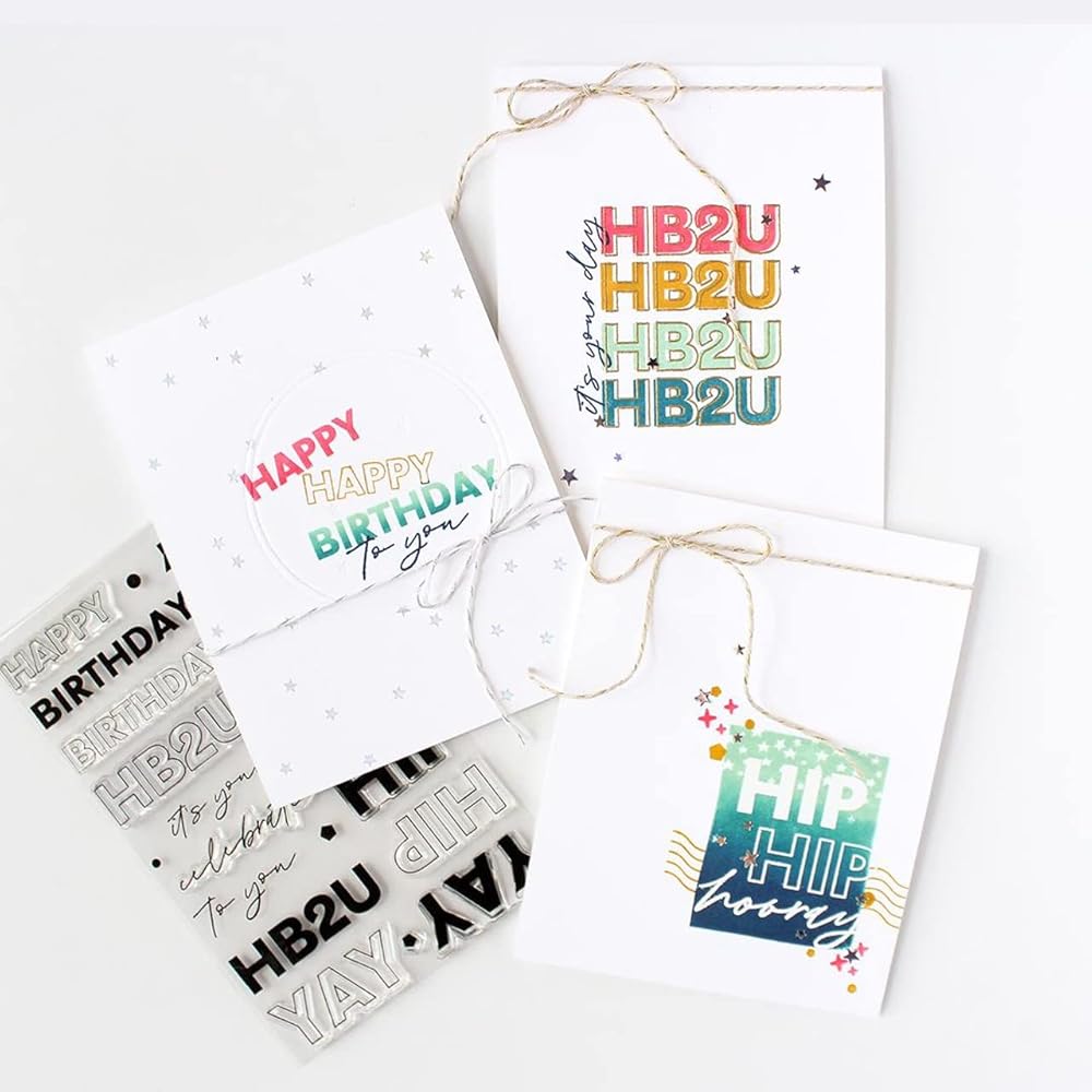 HB2U من Heather Meeson، مجموعة Essentials من Ellen Clear Stamp & Dies Combo، عيد ميلاد سعيد، احتفال، احتفال، ياي، صداقة، مرح، حفلة. مجموعة DIY لصنع البطاقات وسكرابوكينغ