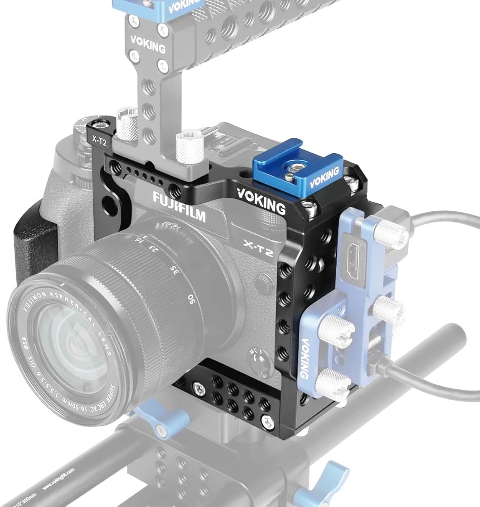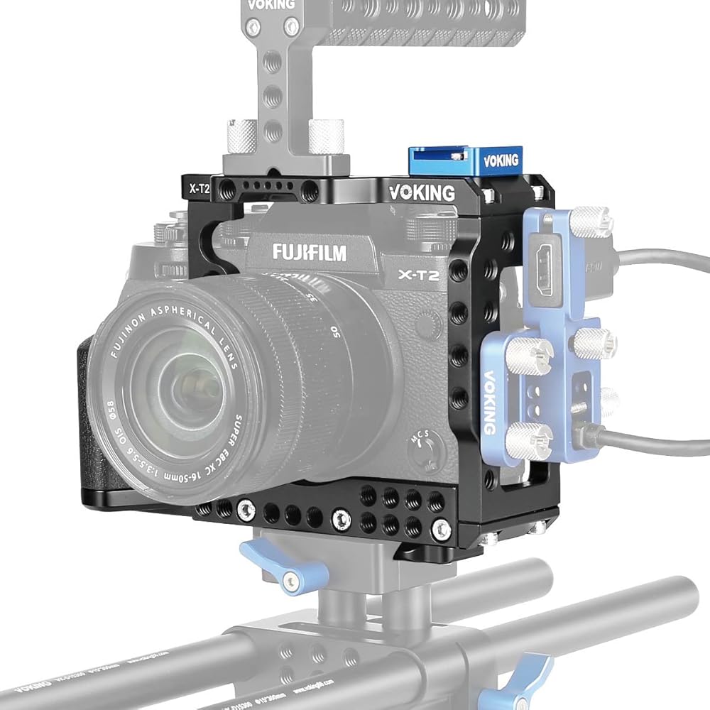 قفص فيديو للكاميرا من سبائك الألومنيوم Voking VK-XT2C مع لوحة تحرير سريعة قابلة للفصل تناسب Fujifilm X-T2