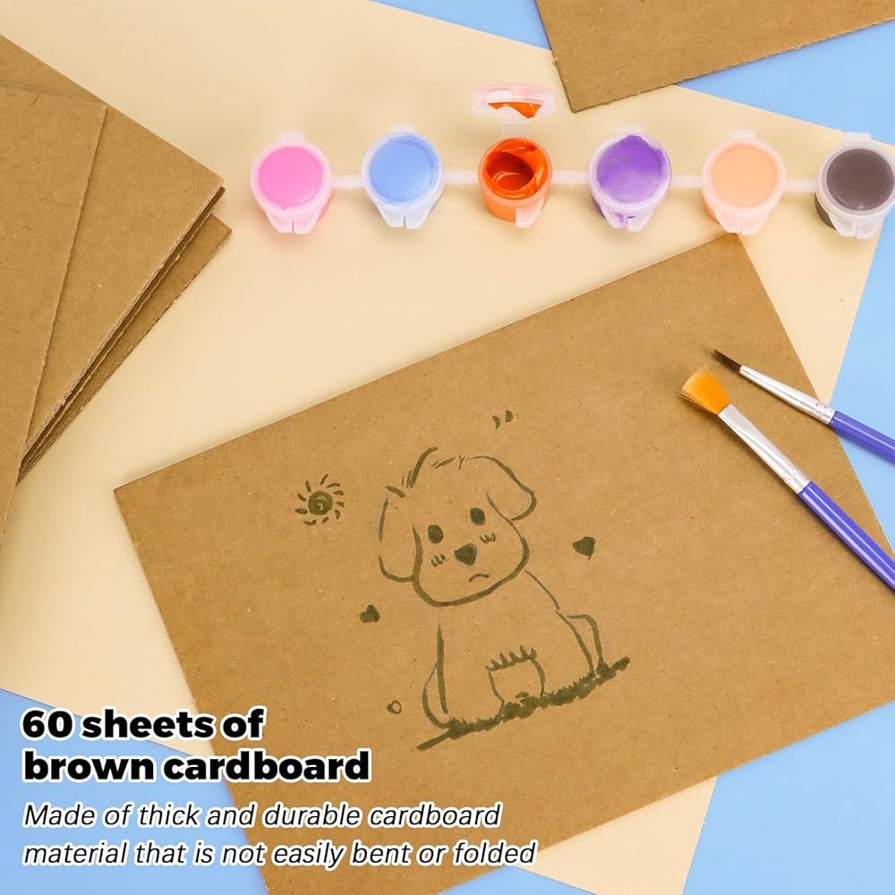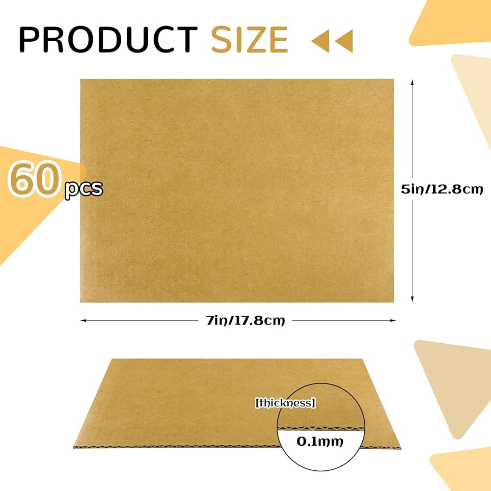 أوراق من الورق المقوى المموج مقاس 12.7 × 17.78 سم، 60 قطعة من الورق المقوى البني المسطح، مربعات من الورق المقوى السميك للتغليف والحرف الفنية التي تصنعها بنفسك