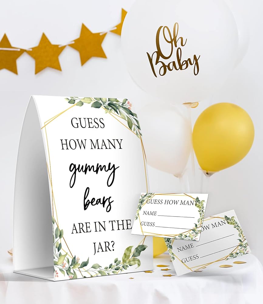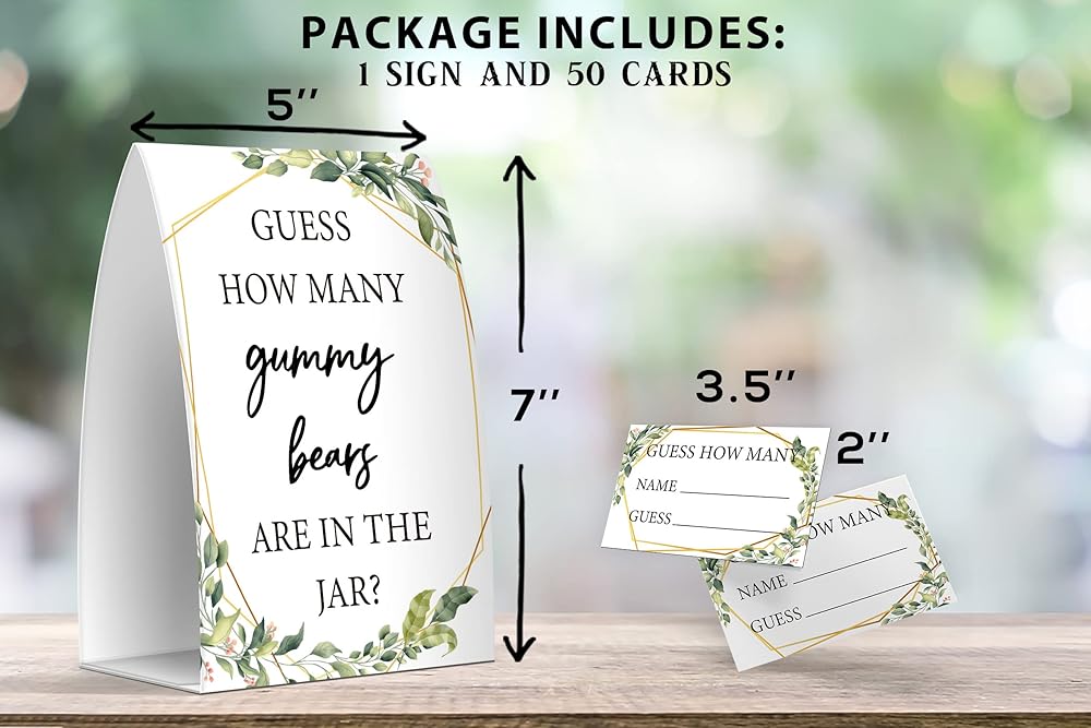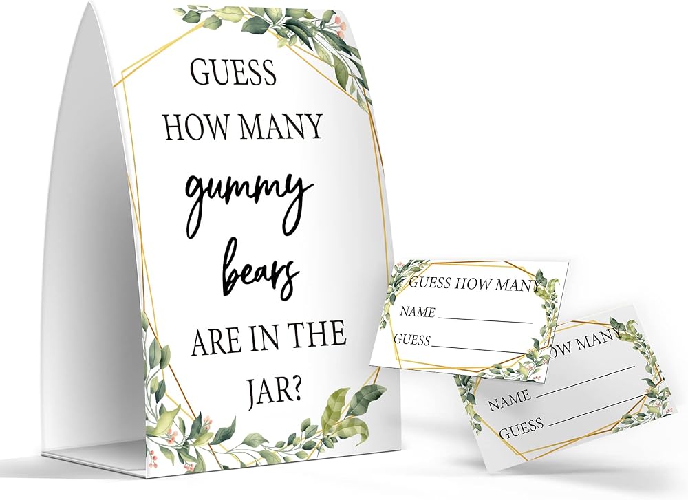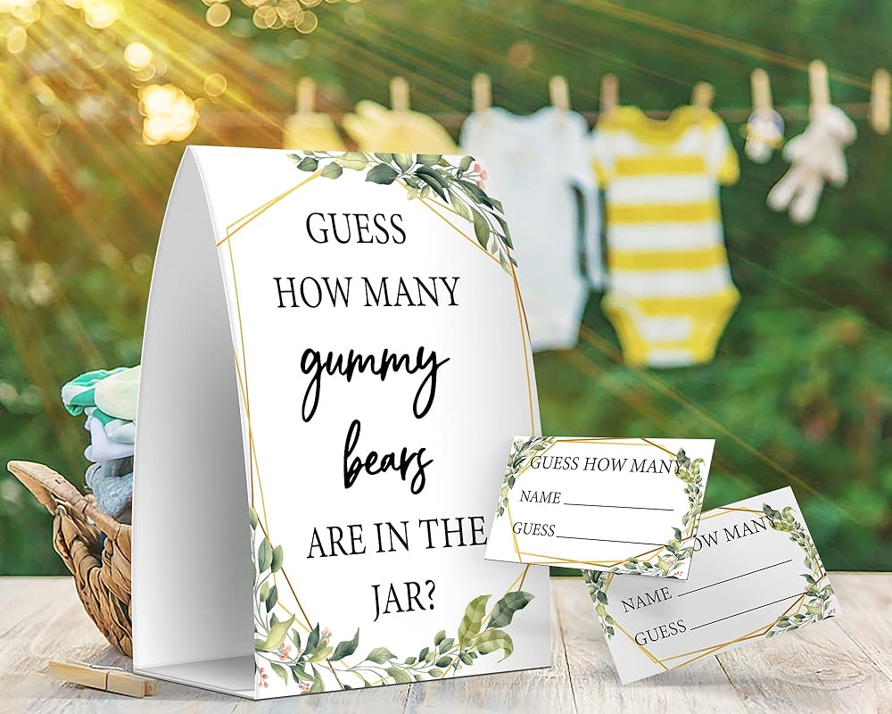 خمن كم عدد الدببة الصمغية الموجودة في الجرة، ألعاب استحمام الطفل الخضراء، حمام الطفل ذو الطابع الأخضر - لافتة واحدة و50 بطاقة (GES11)
