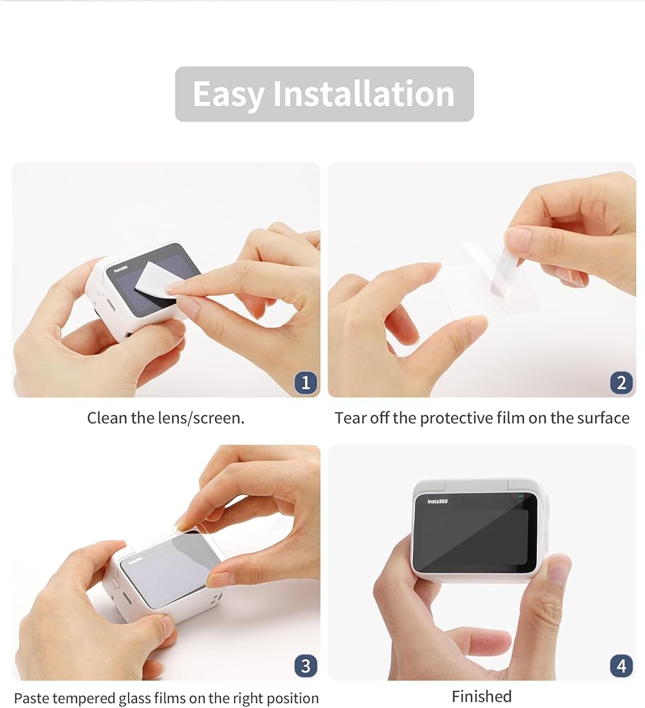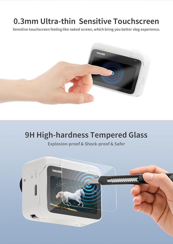 - 【حماية من الزجاج المقوى】طبقة شفافة من الزجاج المقوى لحماية العدسات والشاشة القلابة لجهاز Insta360 GO 3