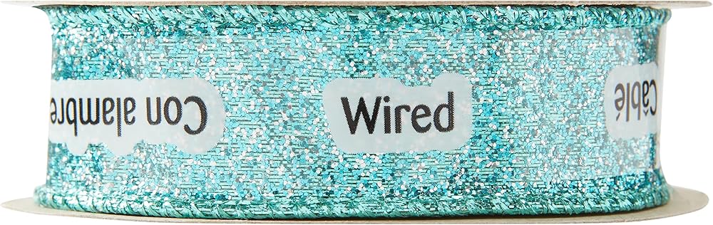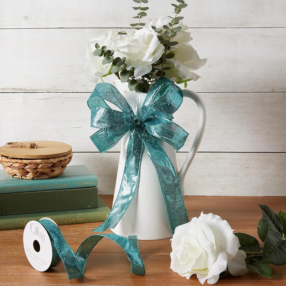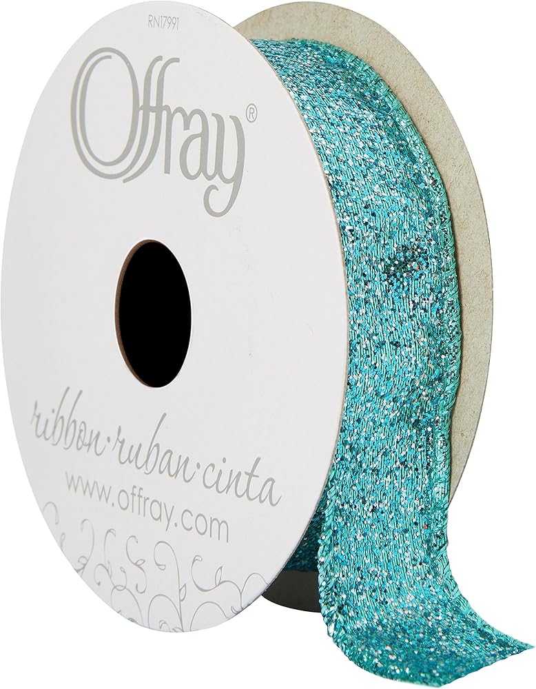 Offray شريط زخرفي لامع معدني بعرض 7/8 بوصة، إجمالي 9 أقدام، أكوا