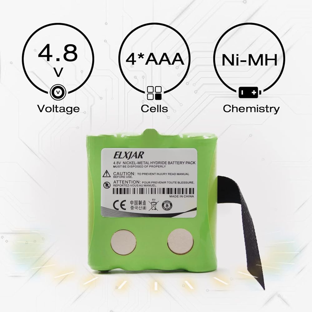 (5 عبوات) بطارية بديلة 4.8 فولت BATT4R Ni-MH لميدلاند AVP-2، G-223، G-225، G-226، G-227، G-300، G-300M، G-500، GXT-200 وGXT-250 وGXT-255 وMOTOROLA TLKR-T5 TLKR-T6 XTR446 أجهزة راديو ثنائية الاتجاه