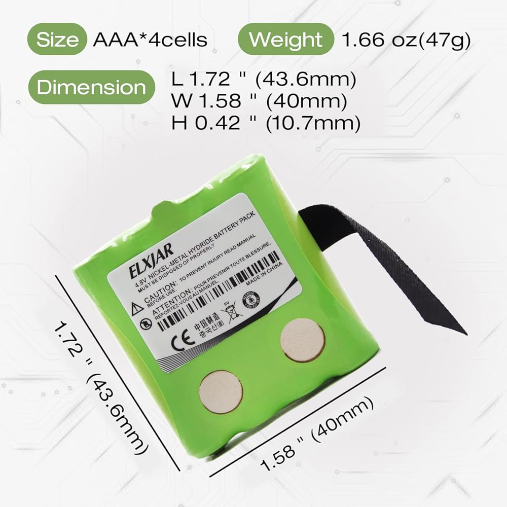 - الجهد الكهربي: 4.8 فولت، السعة: 700 مللي أمبير، الكيمياء: NiMH - هيدريد معدن النيكل
